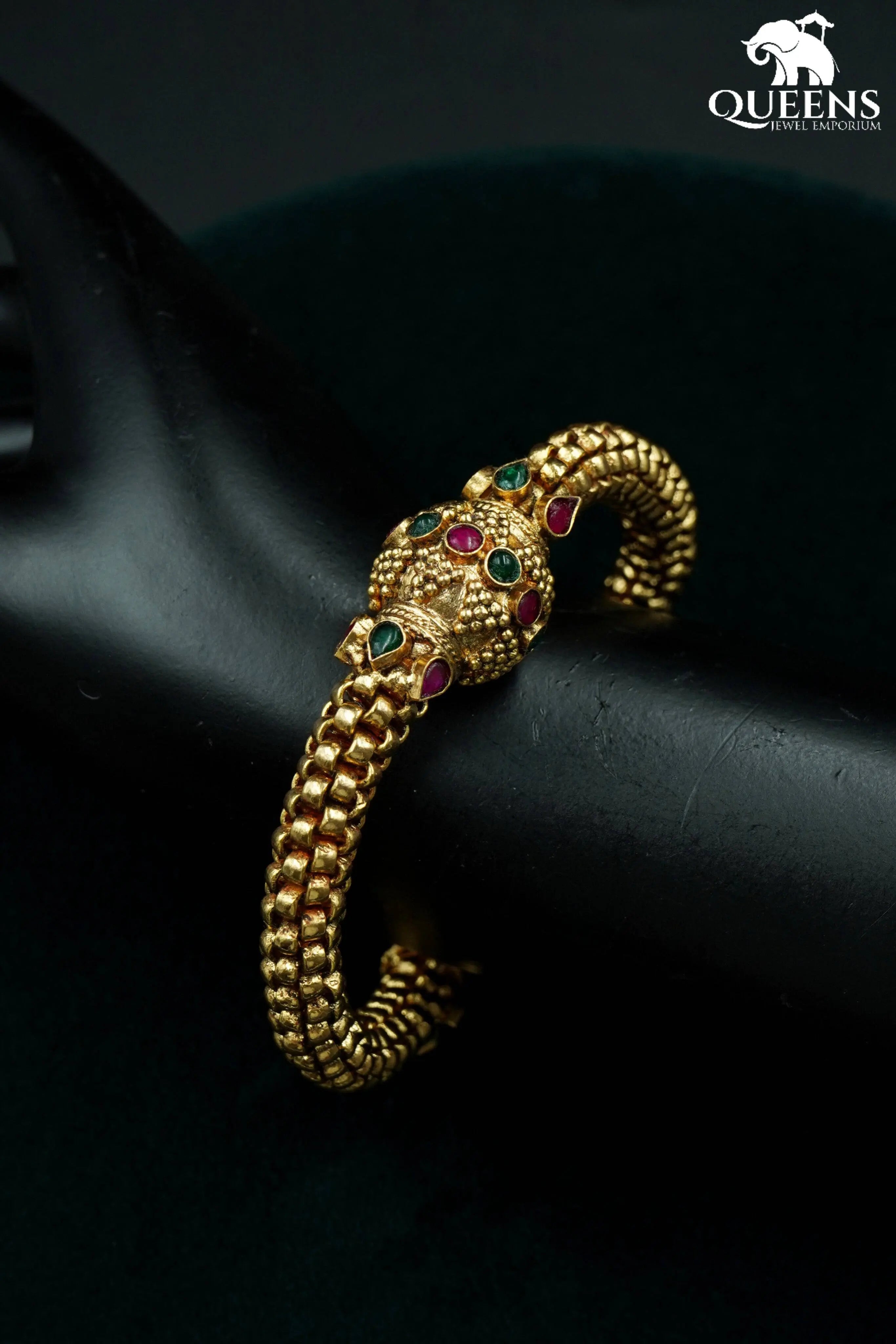 Discover the timeless beauty of South Indian craftsmanship with our exquisite Konkani Style Kada Bangle. This handcrafted piece blends traditional elegance with contemporary flair, making it a perfect addition to any jewelry collection.