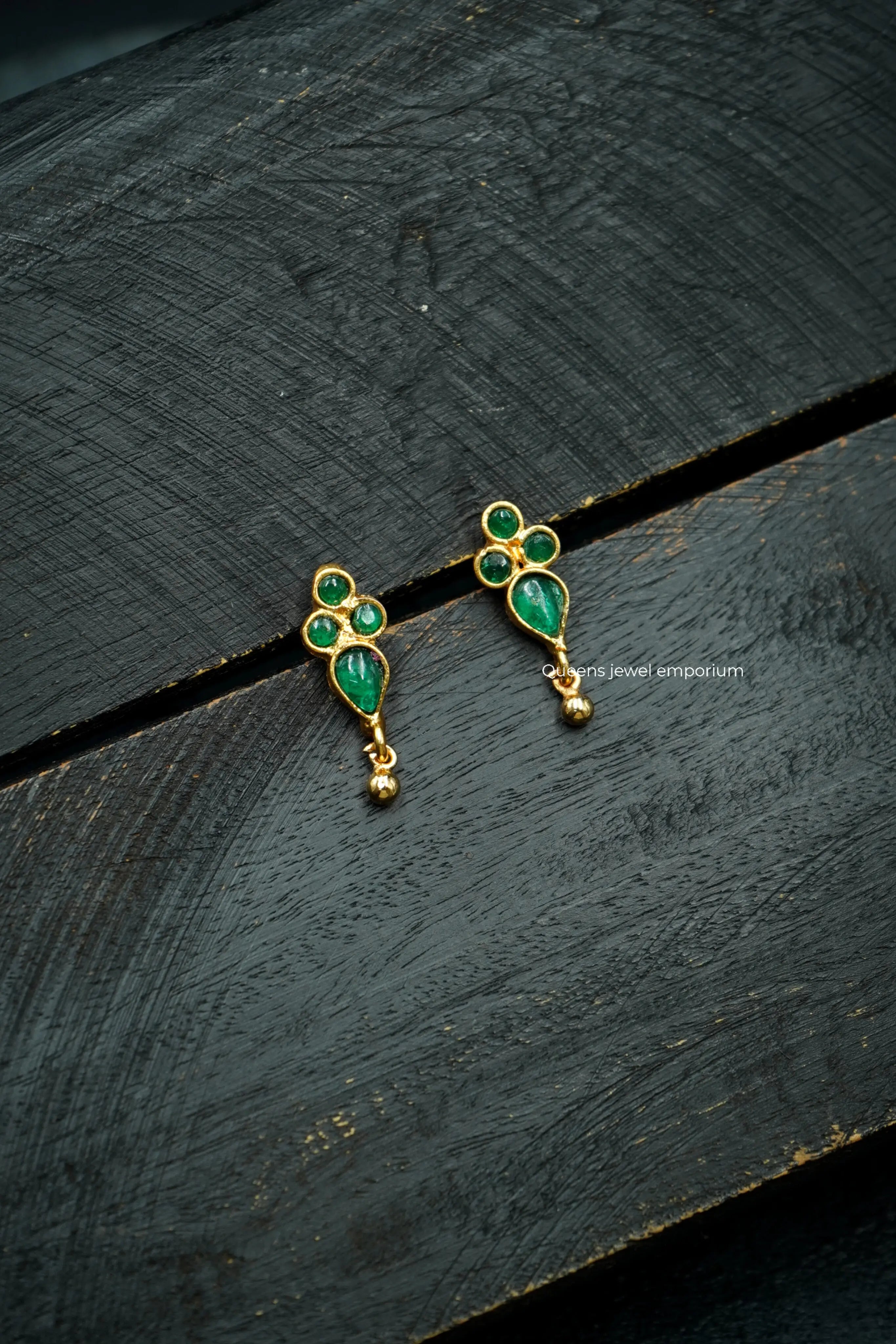 Expertly handcrafted and adorned with traditional Kemp stones, the AARTI STUD is a stunning representation of South Indian jewelry. Its striking green stones add a touch of elegance, making it the perfect accessory for any occasion. Experience the timeless beauty and craftsmanship of this exquisite piece.