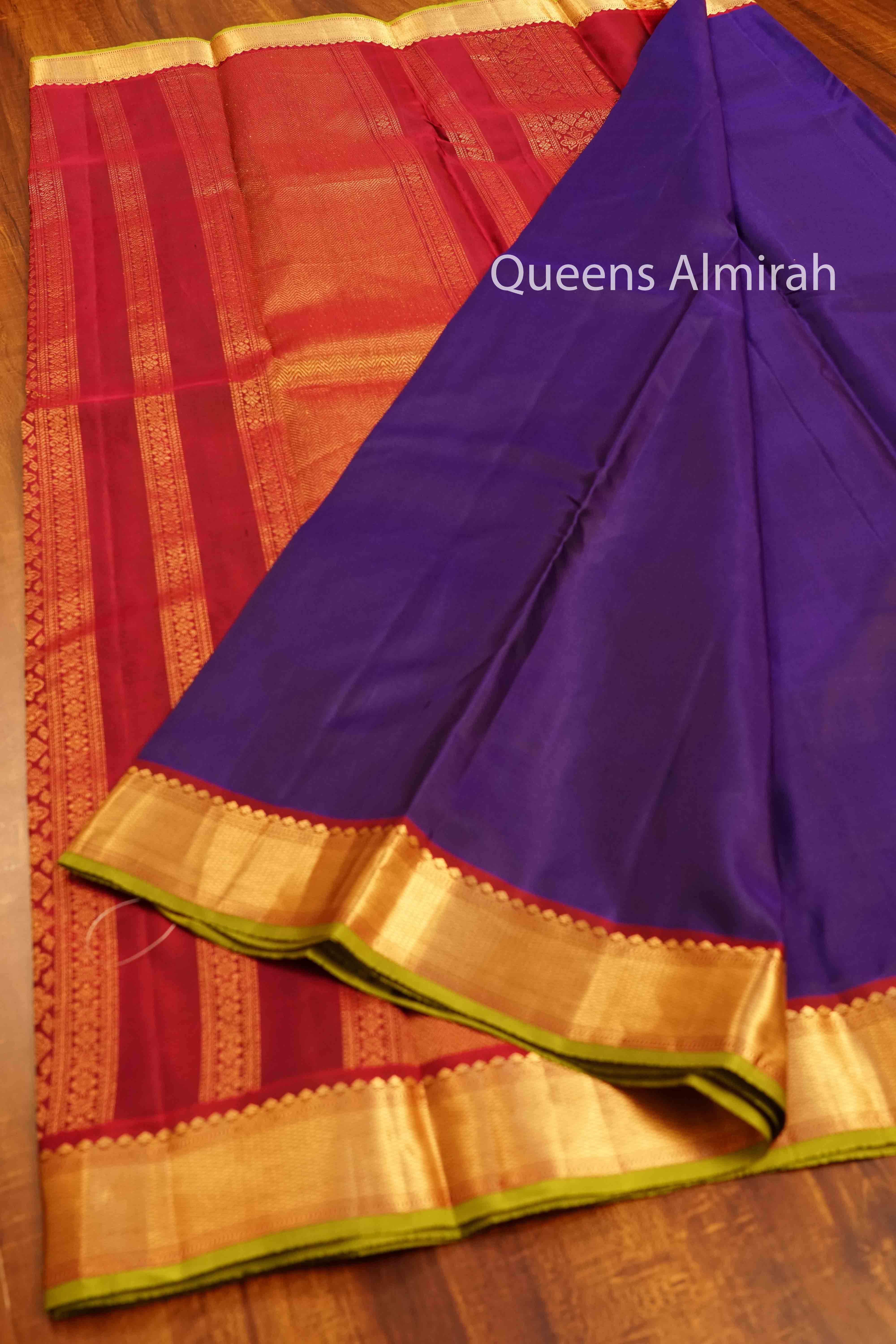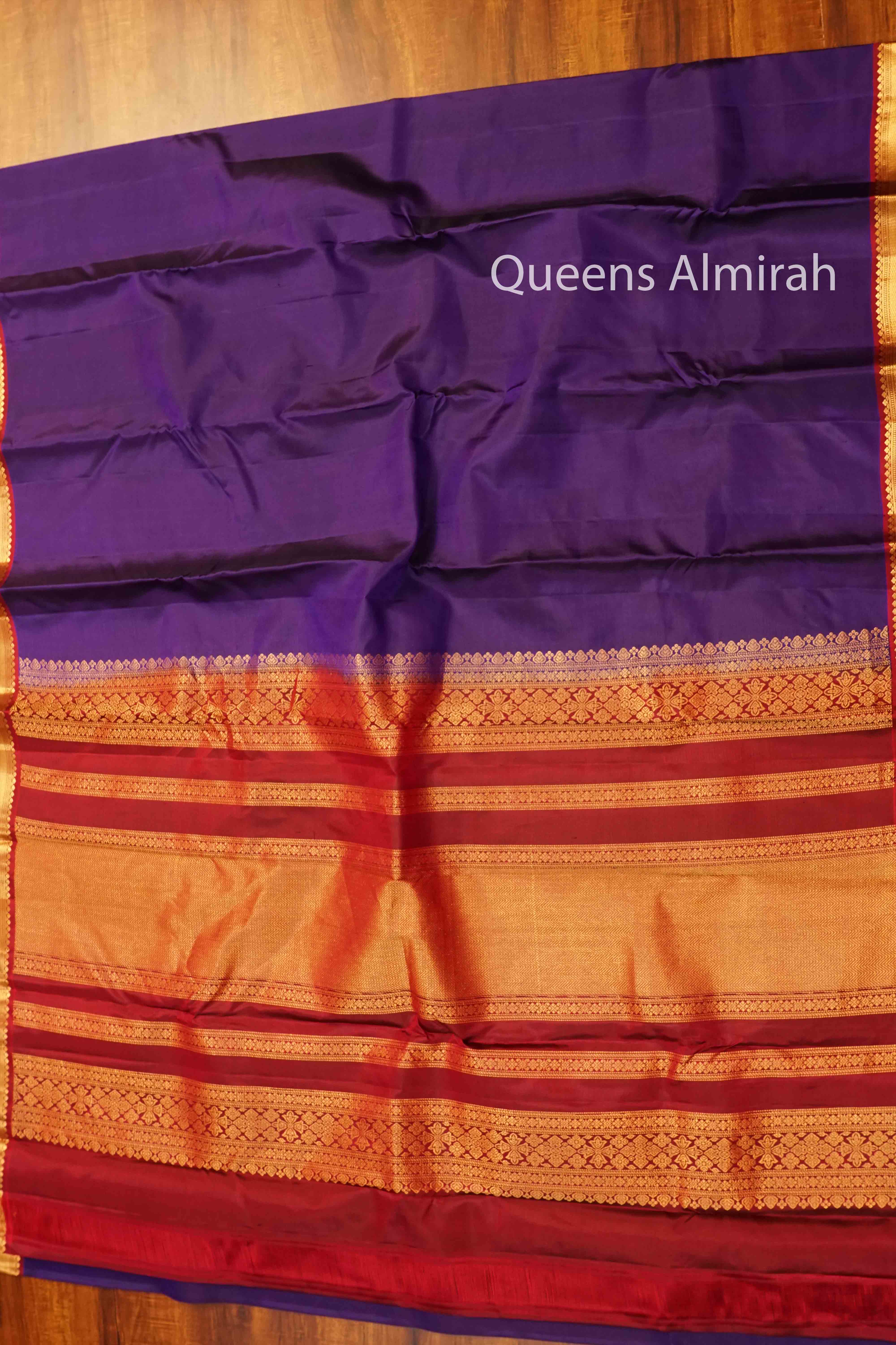 | COLOR | BRINJAL PURPLE WITH DEEP CARAMINE GOLD BORDER |