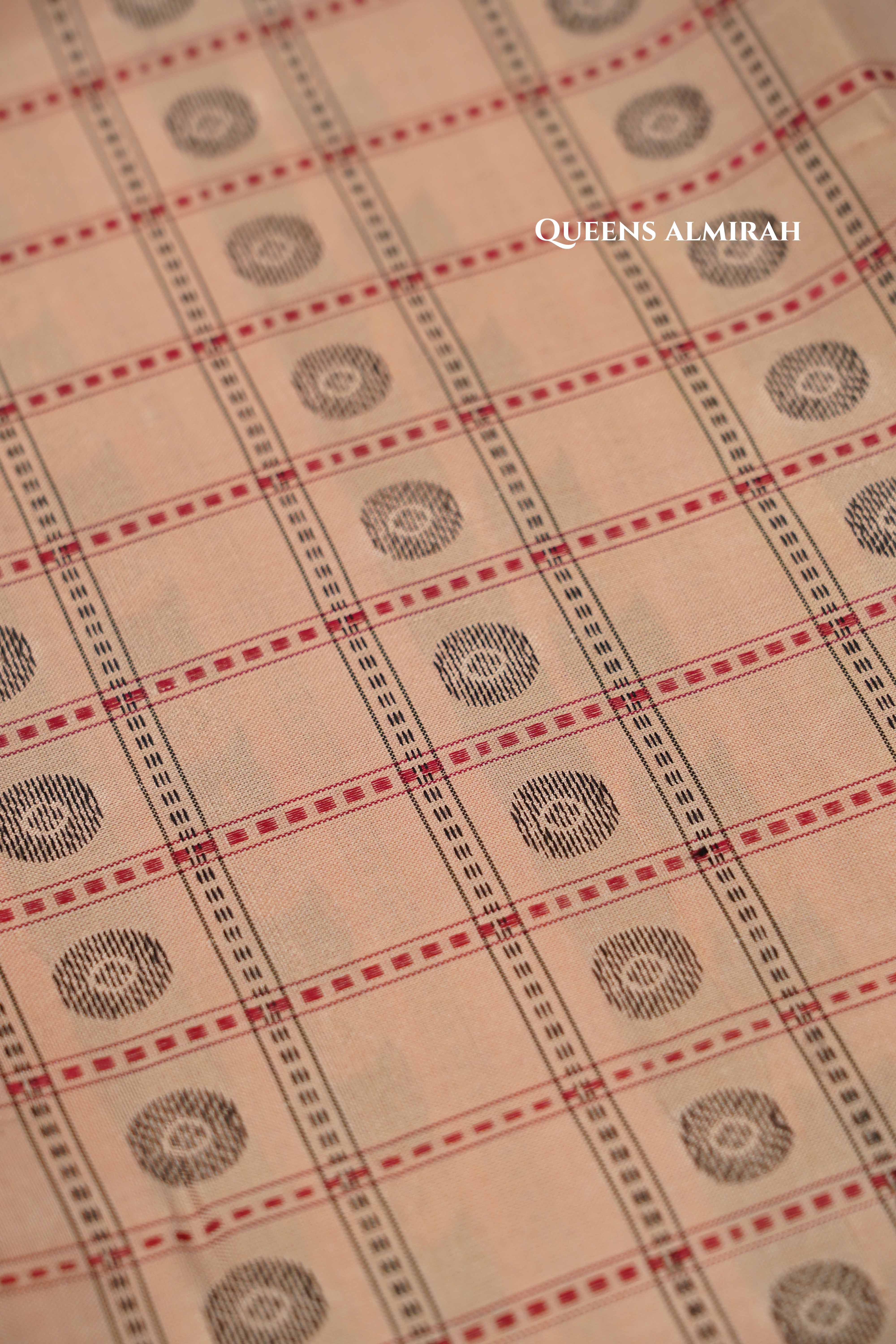 Add timeless charm to your ethnic collection with this pure Kanchivaram silk saree, featuring traditional thread work, intricate thousand butta and checks, and rich Rudraksha detailing. Crafted from 100% pure silk, it’s perfect for weddings, festivals, and grand occasions. The vibrant Light Peach With Light Green hues and handloom finesse make it a must-have statement piece.