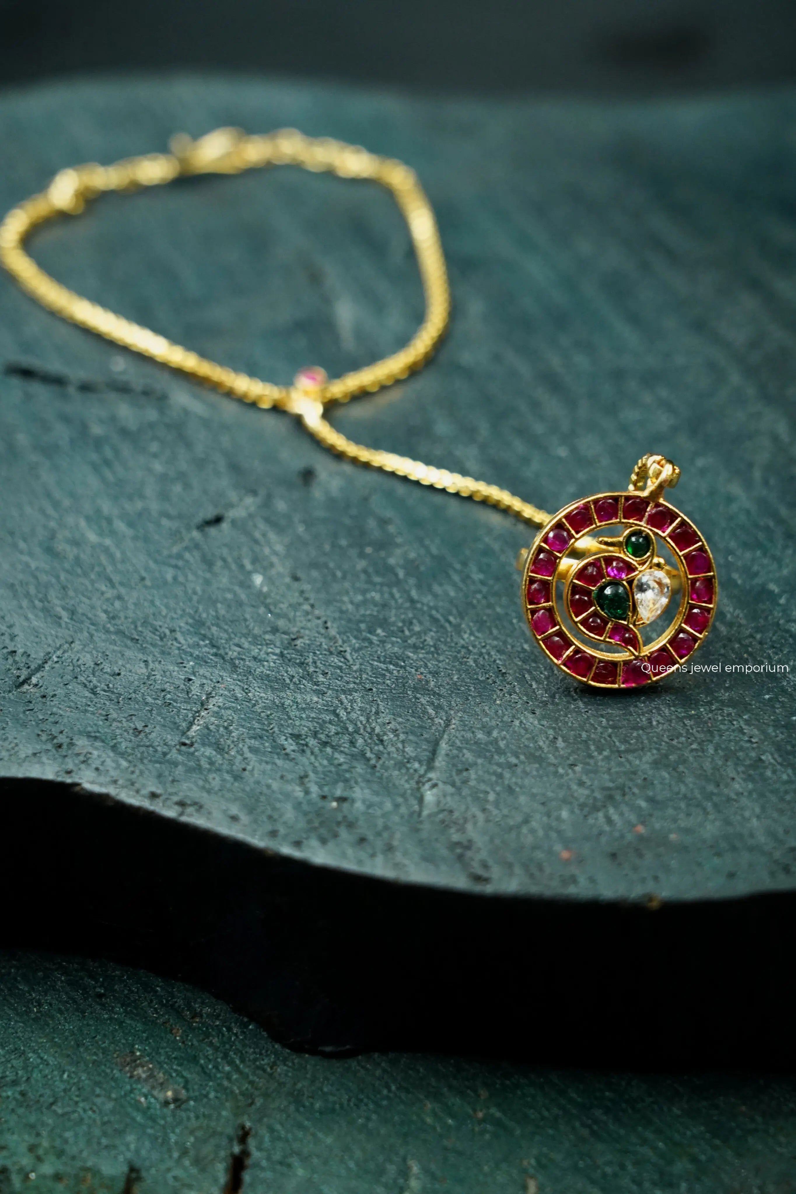 Expertly handcrafted with multiple layers of 24CT gold-plated silver alloy, this finger ring showcases a striking round design with vibrant red, green, and white stones. The traditional elegance and timeless craftsmanship make it perfect for weddings, festive events, and traditional attire. Meticulously crafted by our team of skilled artisans.