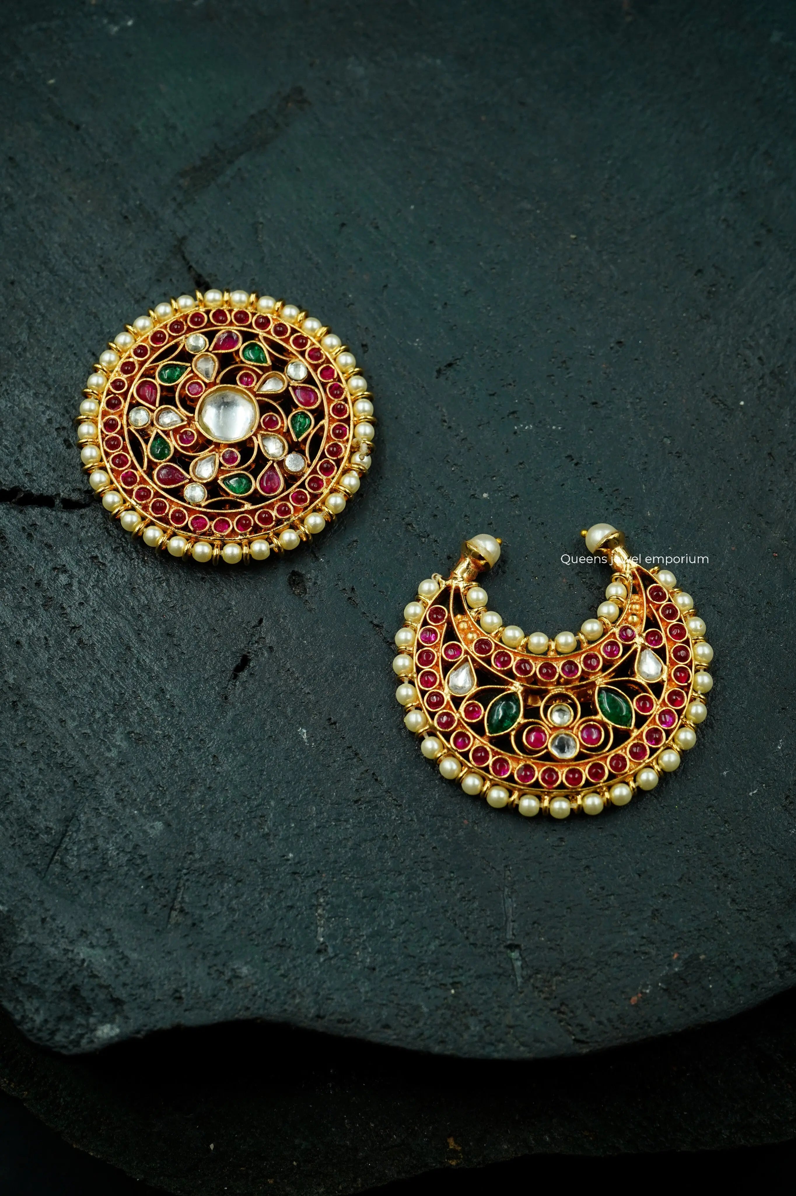Enhance your bridal hairstyle with our sophisticated Jada Villai, crafted by respected designers Chandran and Suriyan. The timeless design seamlessly combines elegance and trend, adding the perfect finishing touch to your traditional look. Elevate your style with ease.