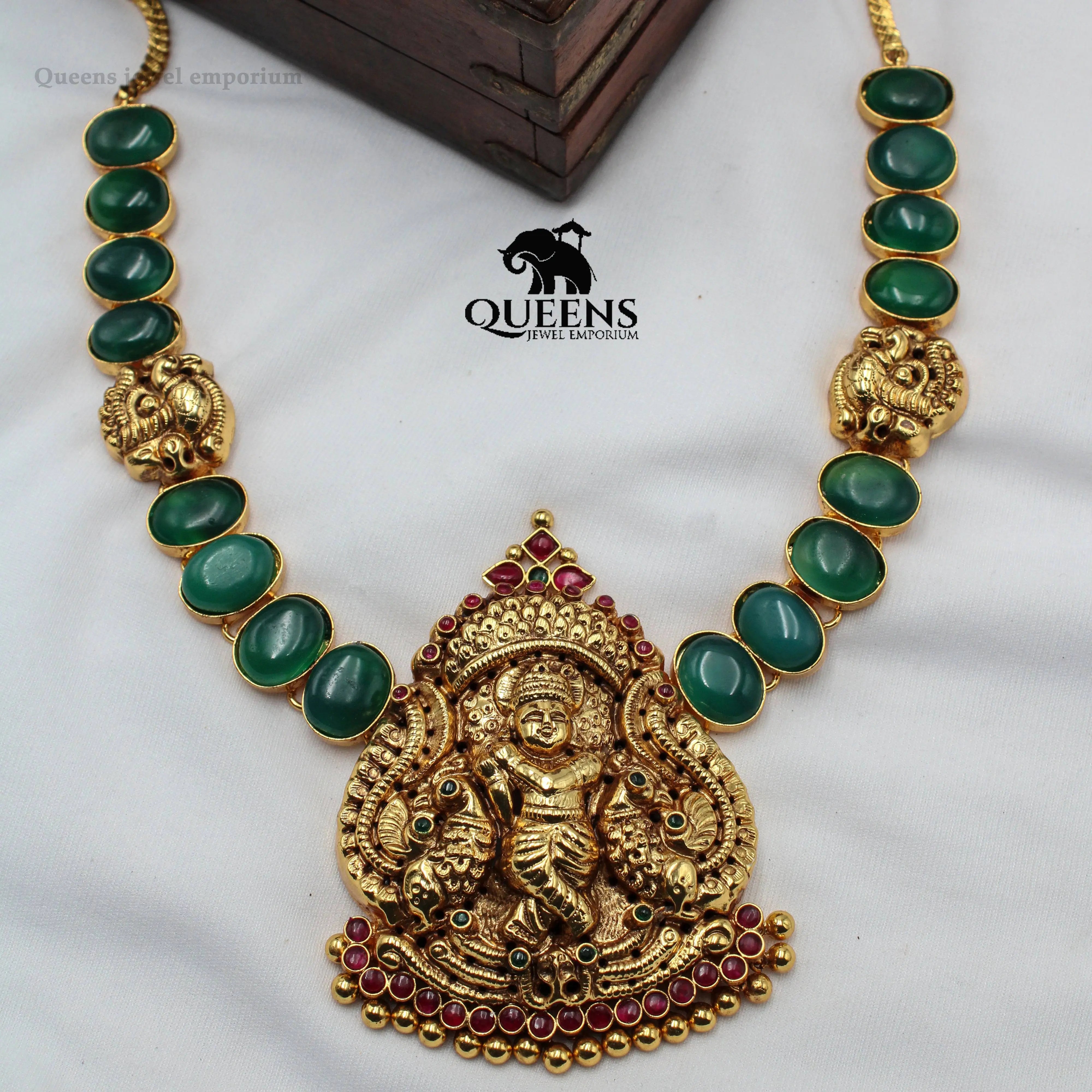 A GRAND NAGAS PENDANT WITH KRISHNA MOTIF, AND A CHAIN IN ONYX STONES, A GRAND ONE TO OWN