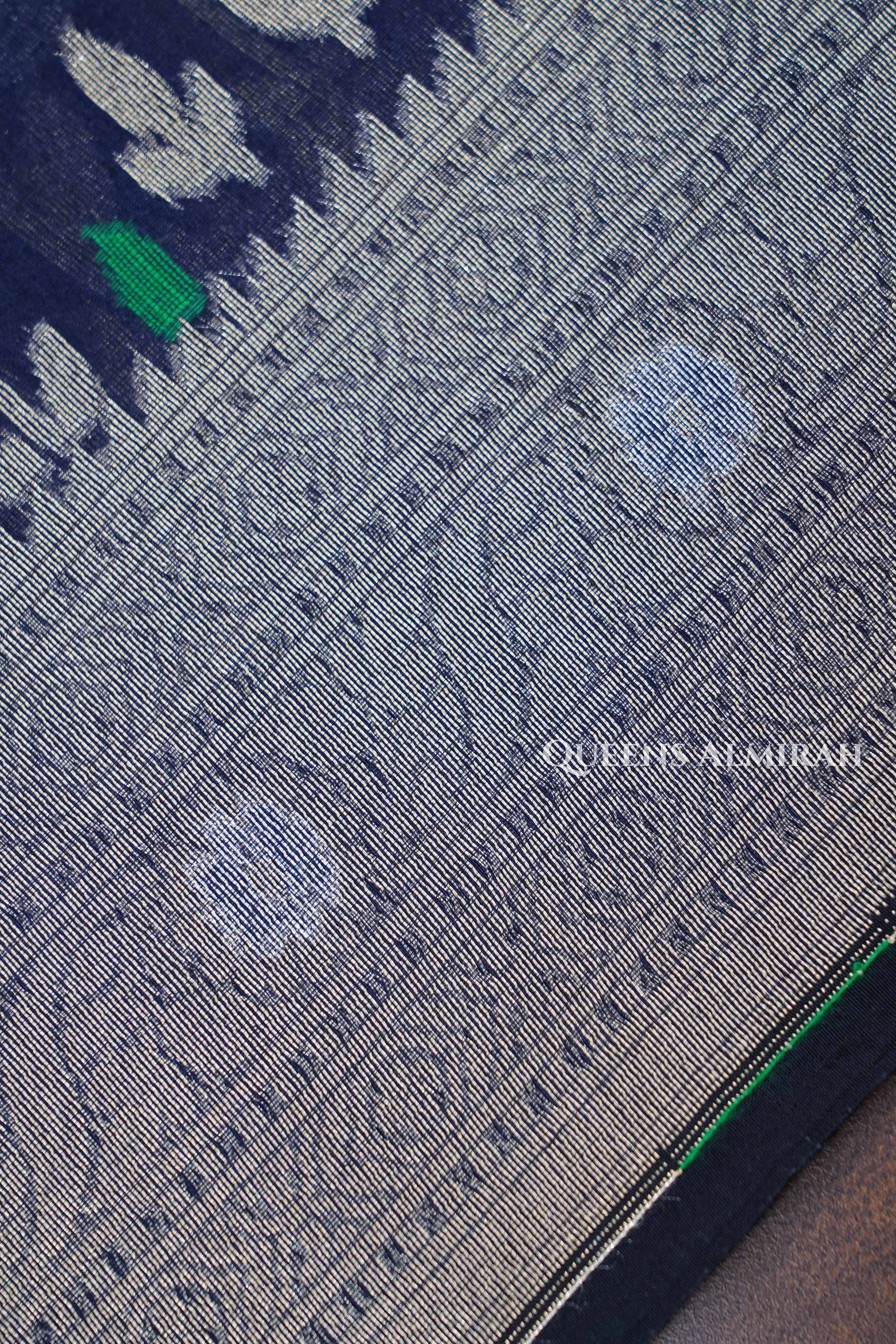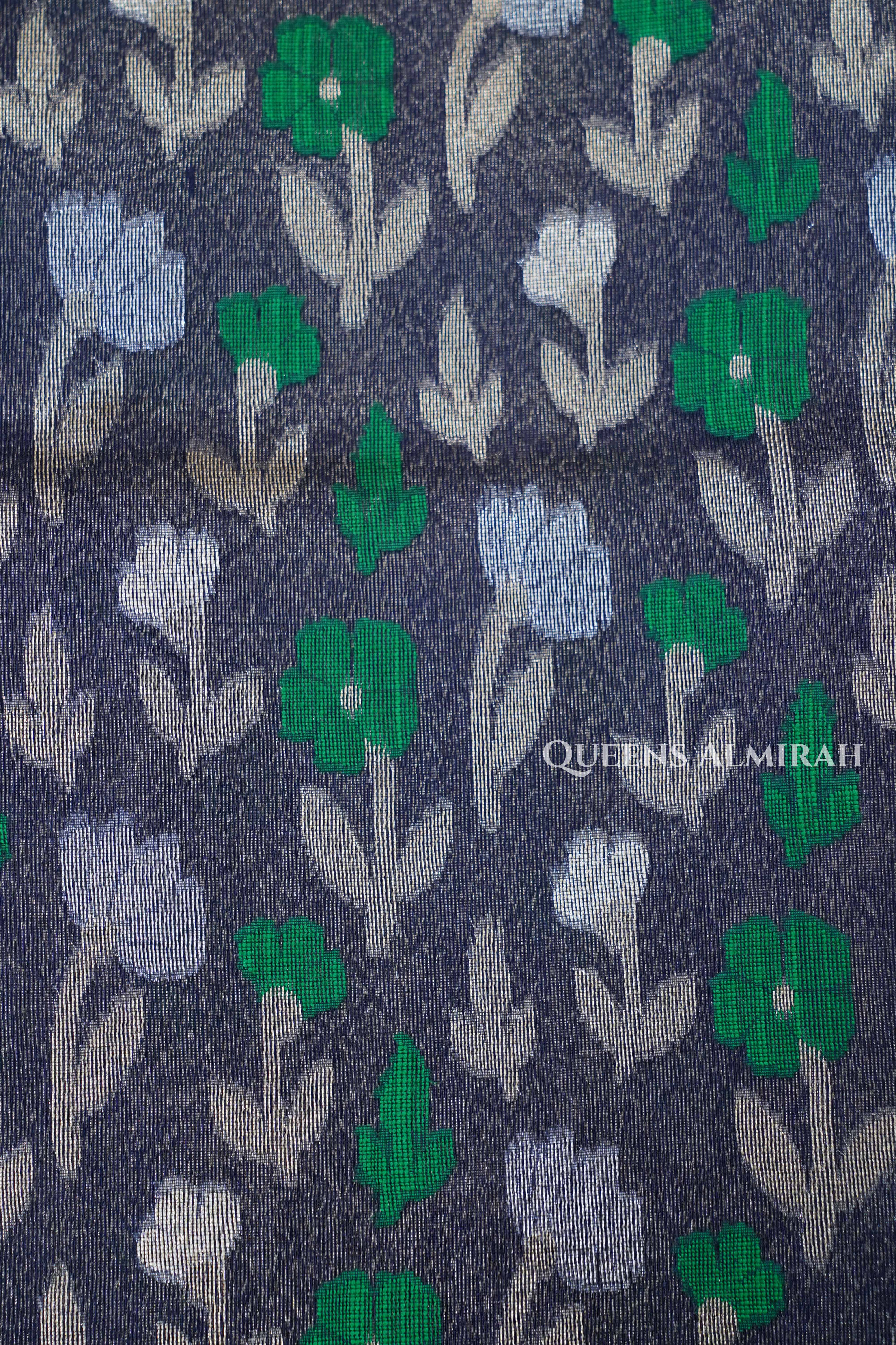This stunning Banarasi Organza saree in rich Dark Navy features an exquisite Kodi pattern intricately woven with zari detailing. The soft organza texture adds a sheer elegance, making it perfect for Muhurtham moments or a graceful Reception look. A beautiful blend of tradition and sophistication.