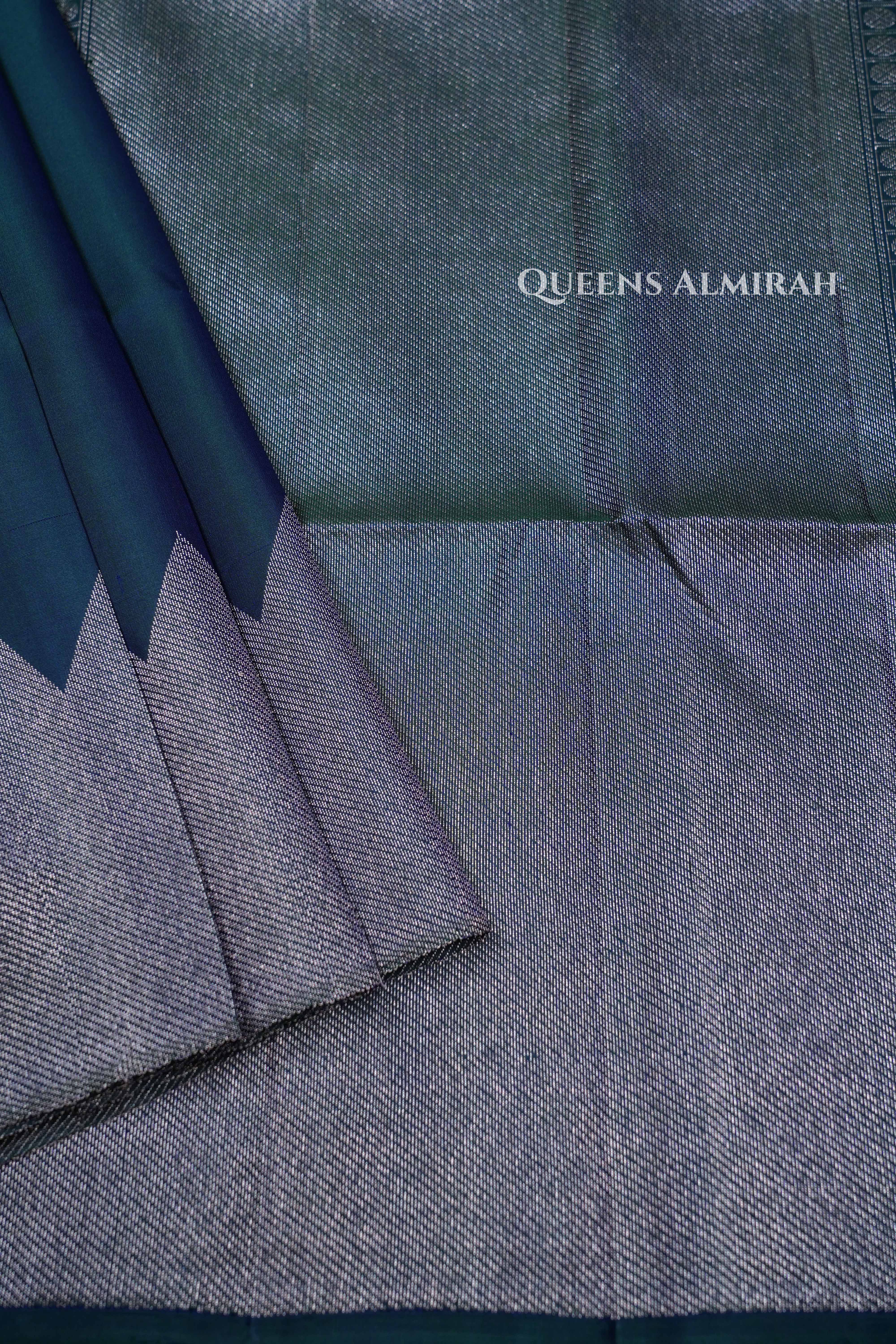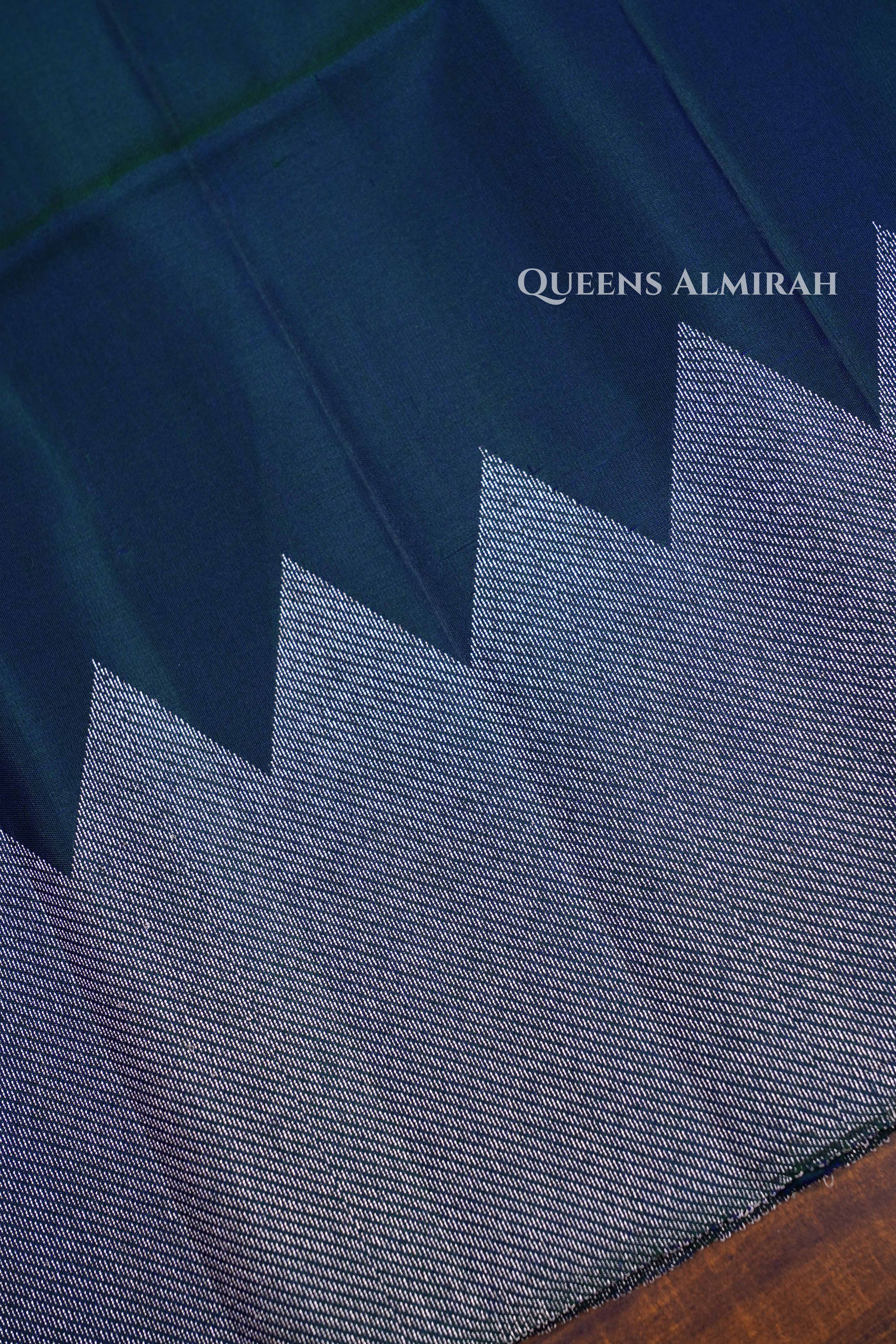 This Indigo Soft Silk Saree exudes timeless charm with its rich body and striking silver zari temple border. The intricate weave enhances its traditional appeal, making it an elegant choice for festive occasions, weddings, and cultural celebrations. A perfect drape from Queens Almirah that blends heritage with sophistication.