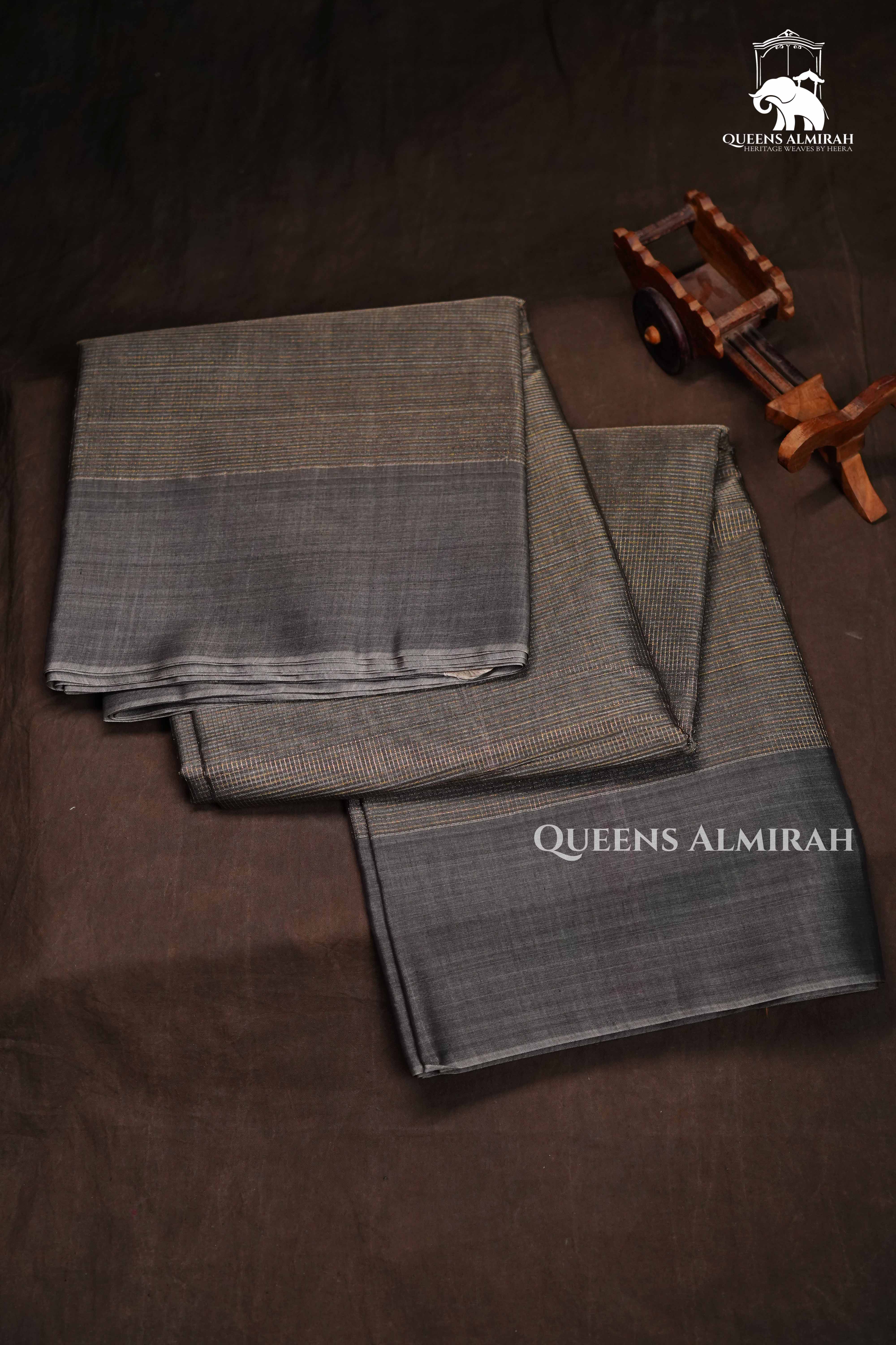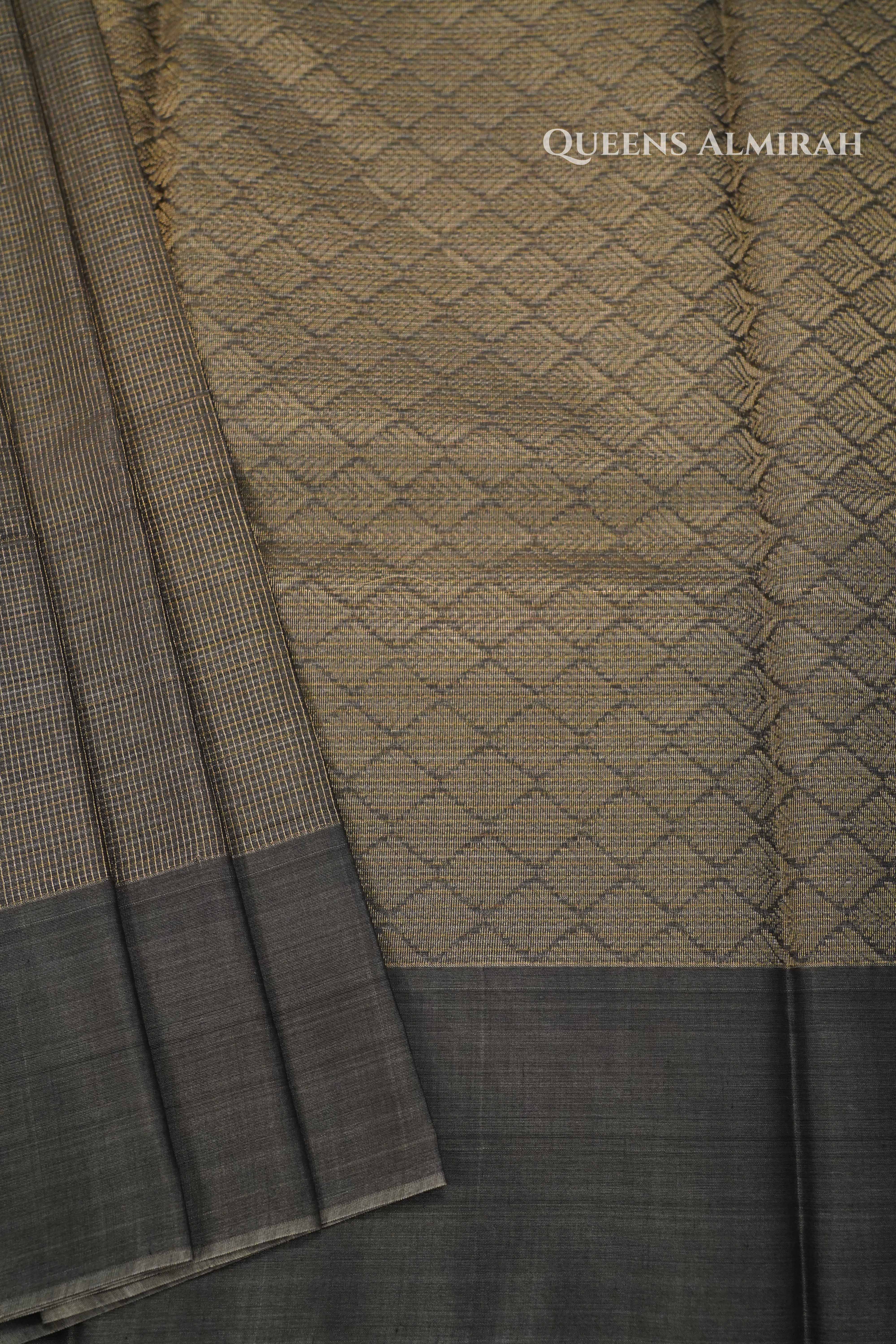 Classic silk-cotton sarees in elegant grey green. Featuring subtle micro-check patterns and solid contrasting pallus, these lightweight drapes offer a soft sheen and breathable comfort. Perfect for office wear, casual outings, and understated festive occasions.