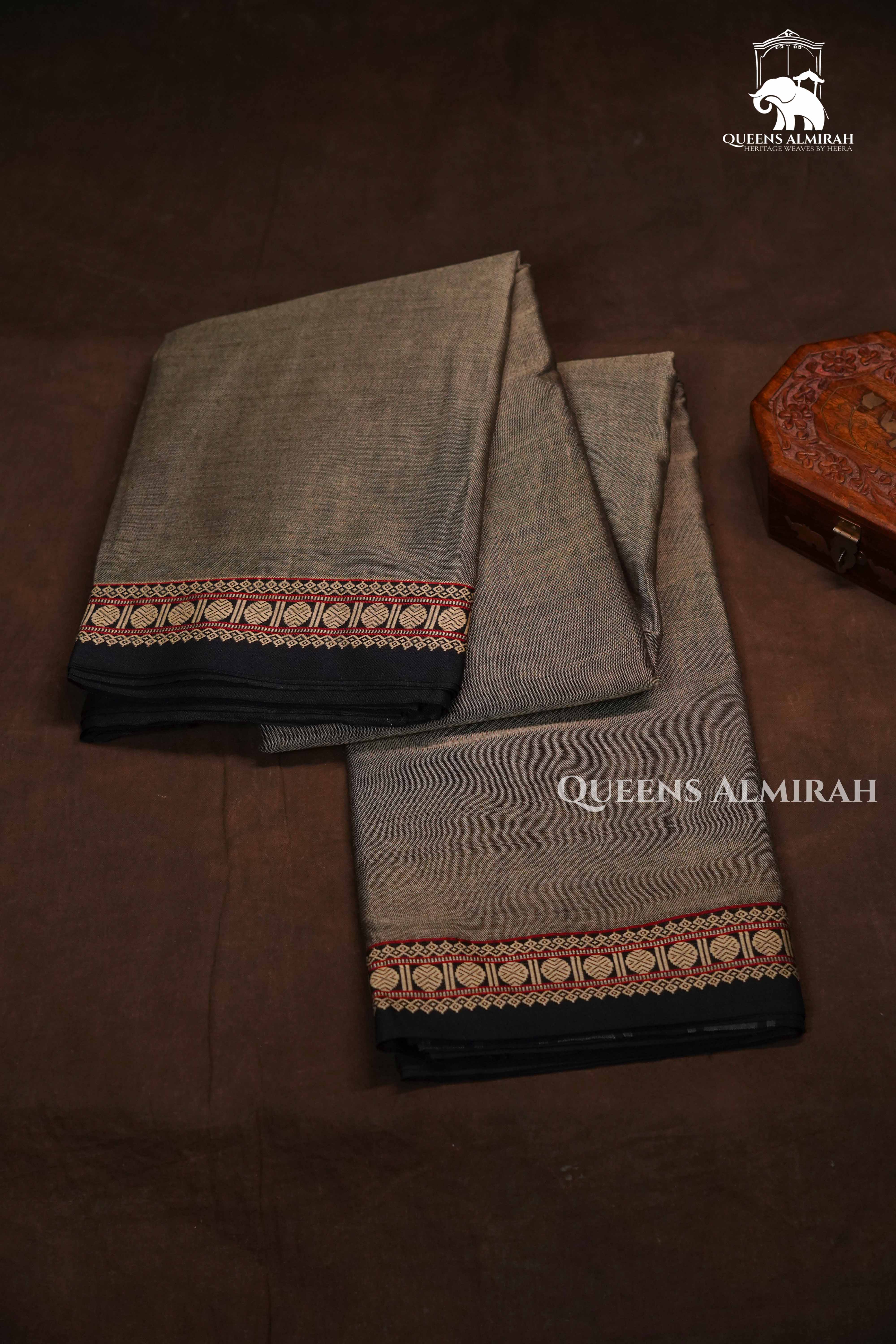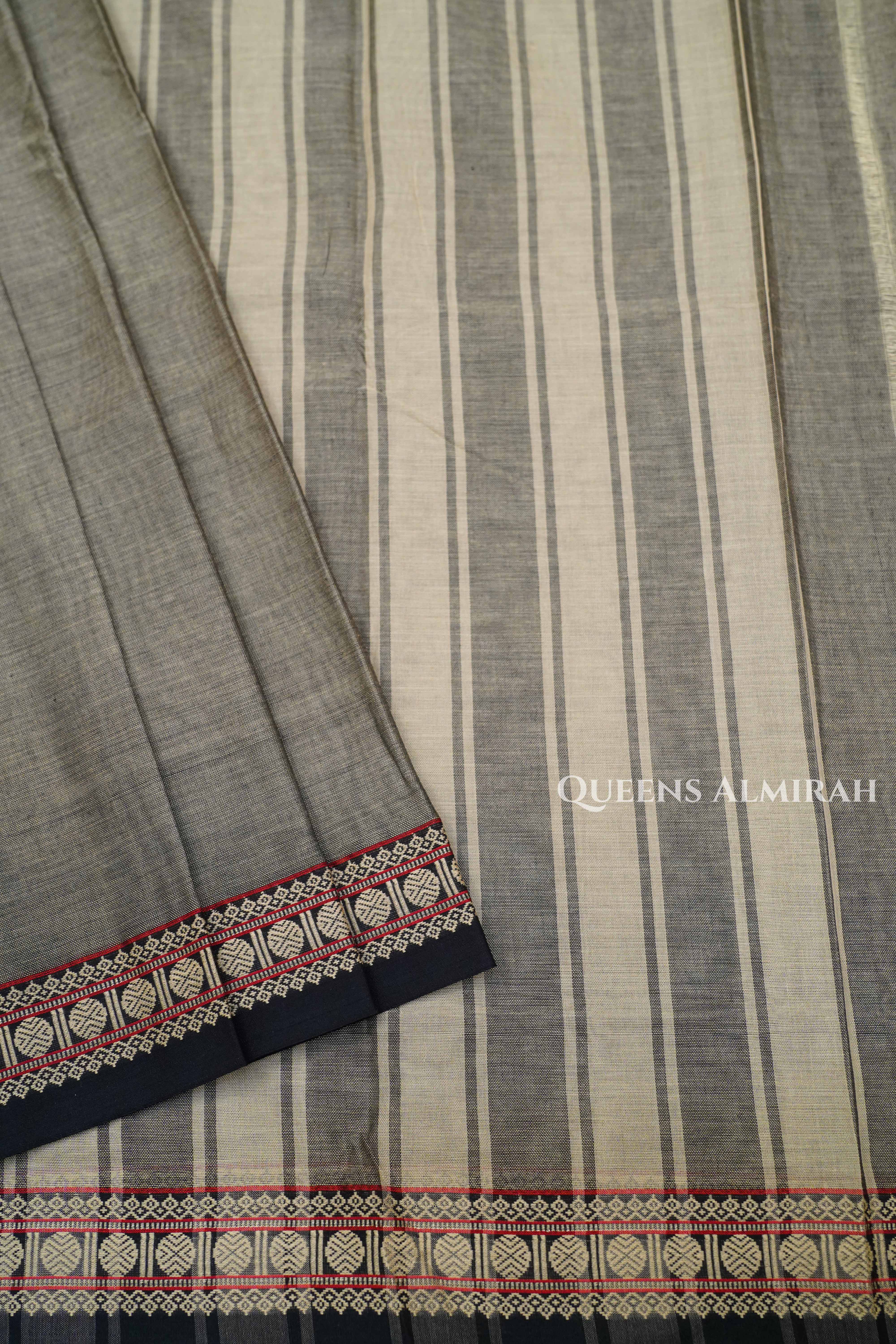 "Elegance in Every Thread – This stunning Grey Narayanpet cotton saree features a rich body in Grey , perfectly complemented by a striking red temple border with intricate silver zari designs. Lightweight and breathable, it’s an ideal choice for everyday elegance or traditional occasions. Pair it with simple jewelry for a timeless, graceful look."