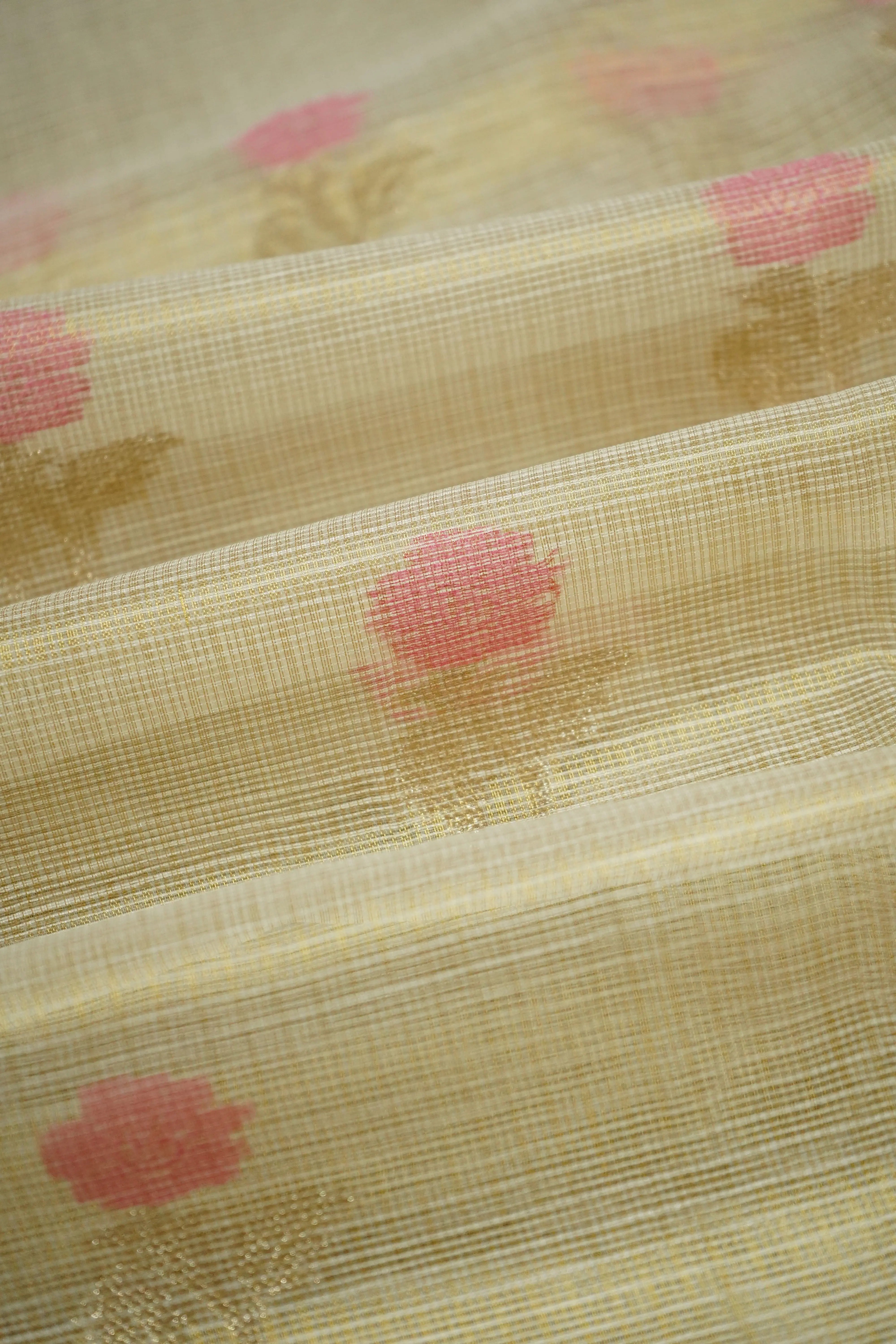 GREY OLIVE HALF PURE KOTA SILK SAREE offers a stunning and unique touch with intricate meena work on a large and small border. Expertly crafted, this saree provides both style and comfort with its attached blouse. Elevate your look with this elegant and convenient choice.