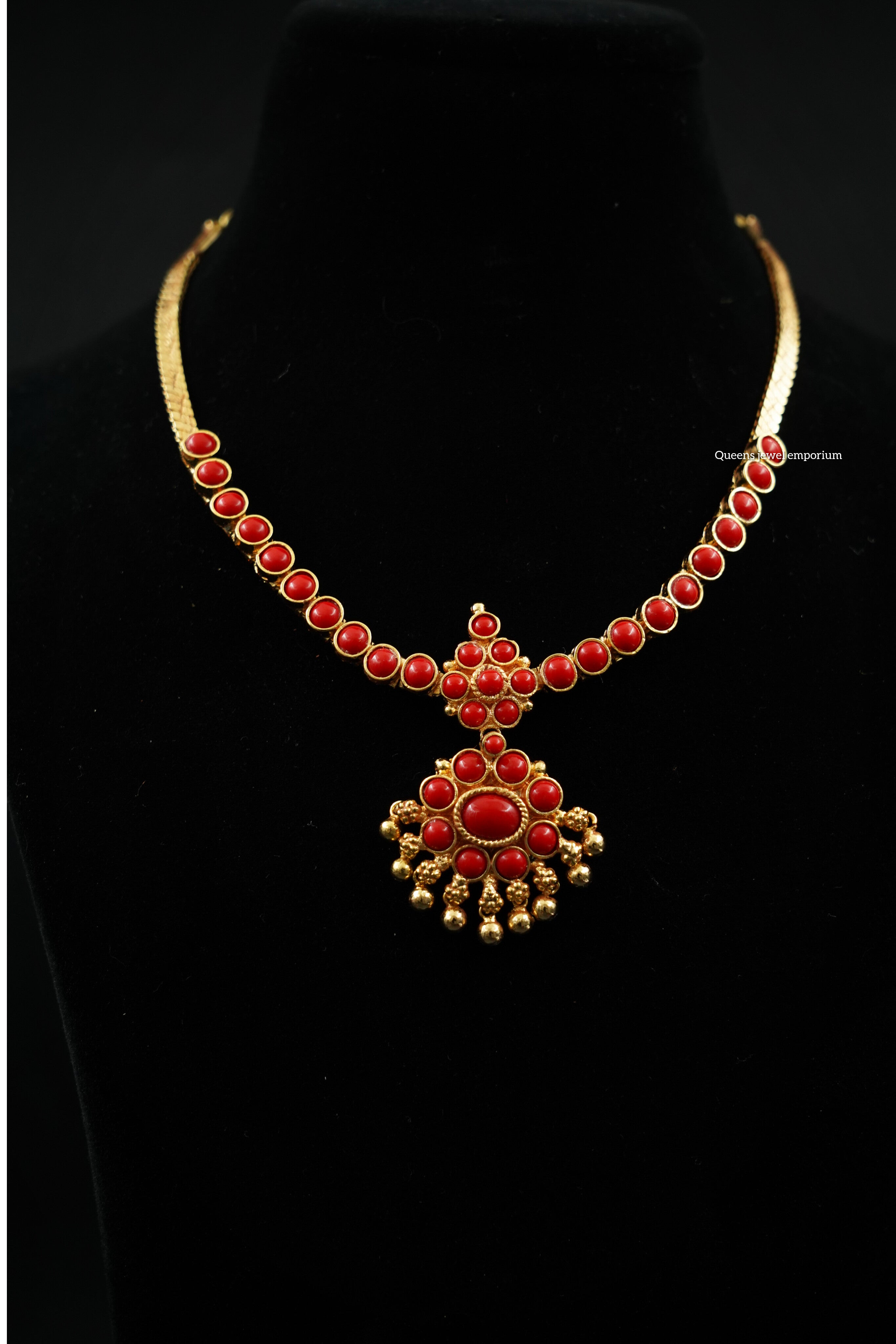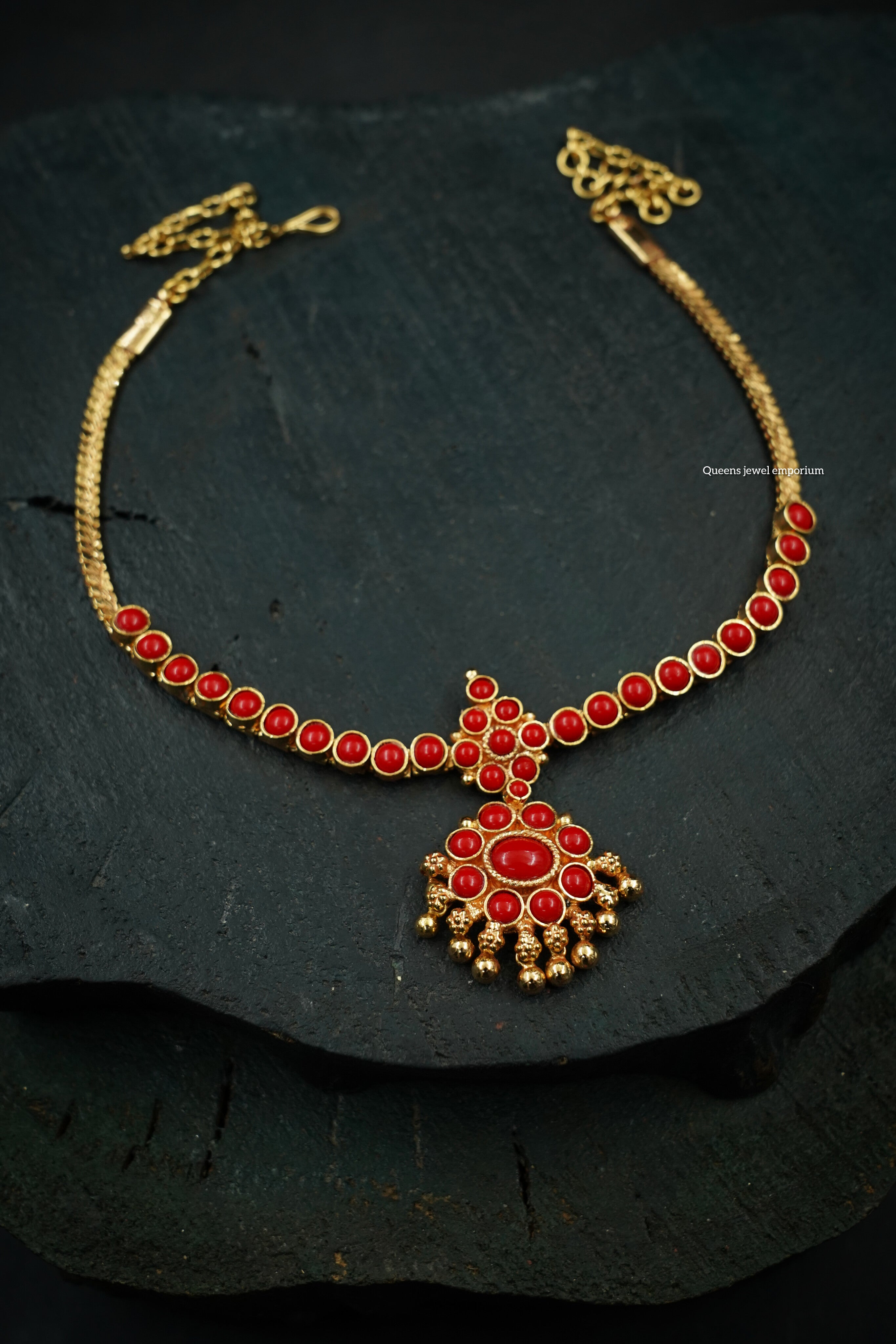 Elevate your style with Janaki coral adigai,meticulously crafted South Indian accessory made from 24CT gold-plated silver alloy. Adorned with a striking yellow coral stone and gold balls, this jewel exudes a blend of elegance and culture. Pair with silk sarees for a timeless look. Lifetime exchange value included.