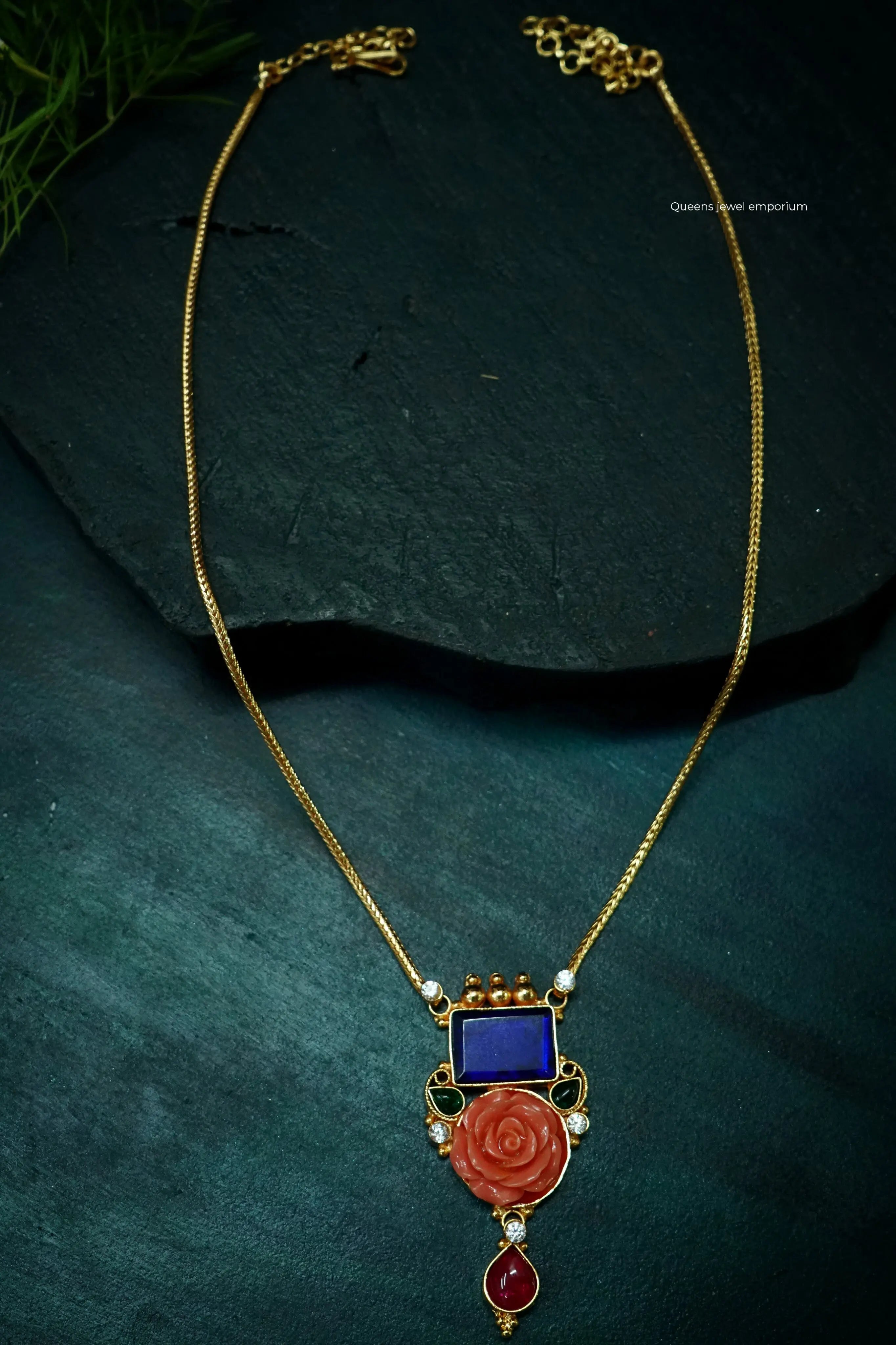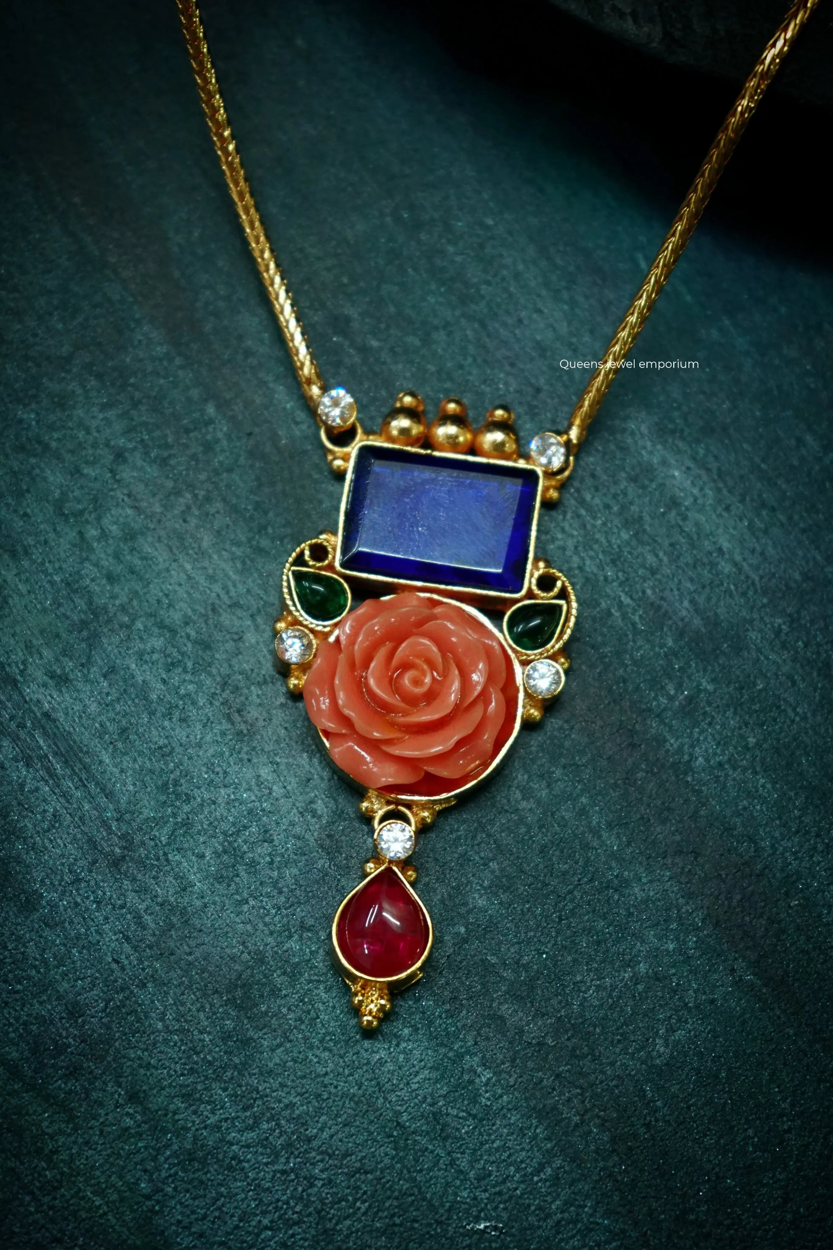 Our jewels are handcrafted using an ancient South Indian technique, blending premium metals or silver alloy with multilayered 24K gold forming. Set with real stones and inspired by temple and royal artistry, each piece is unique, enduring, and made to last without fading or tarnish.