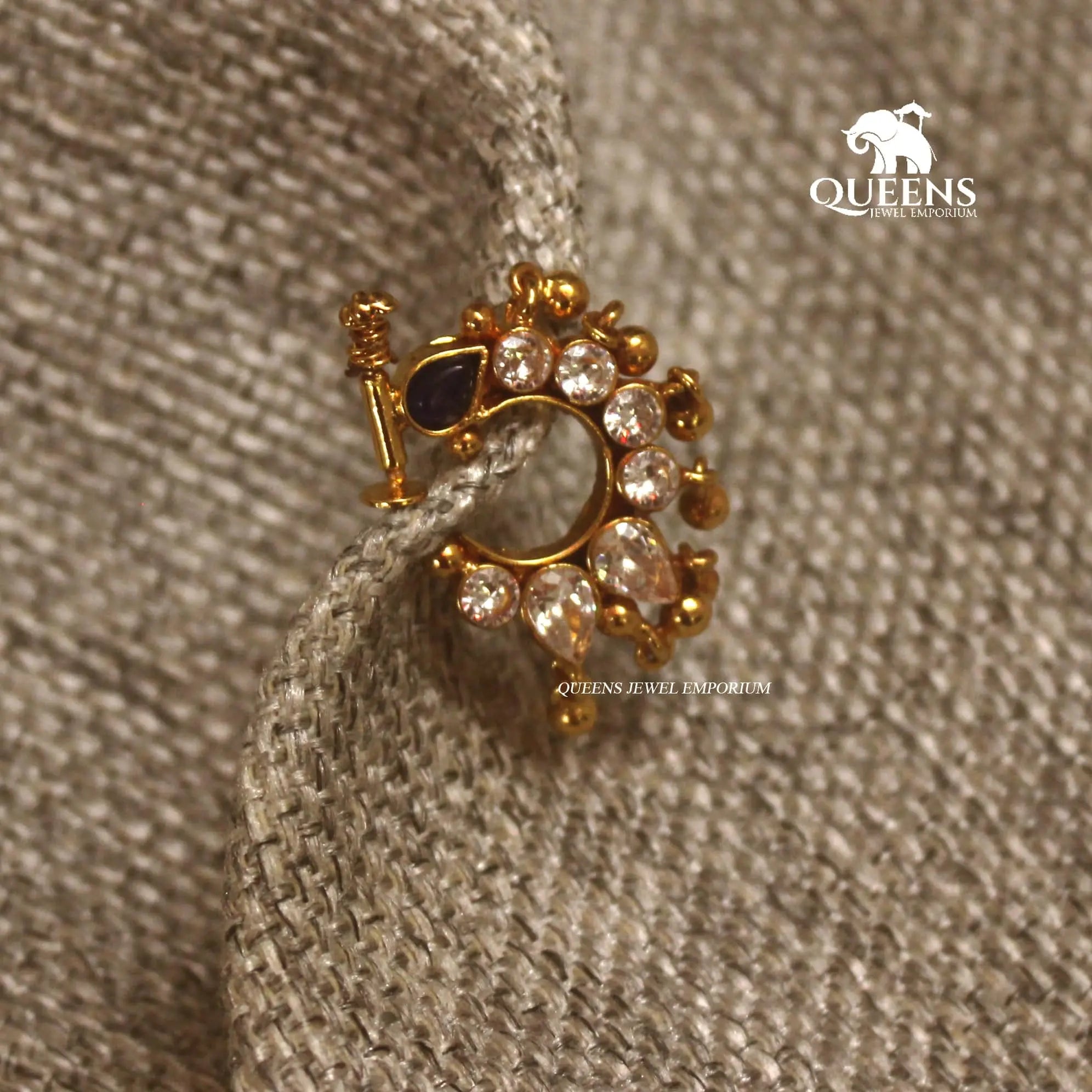 A beautiful press-type bridal Nath to embellish your nose and match your traditional jewelry.