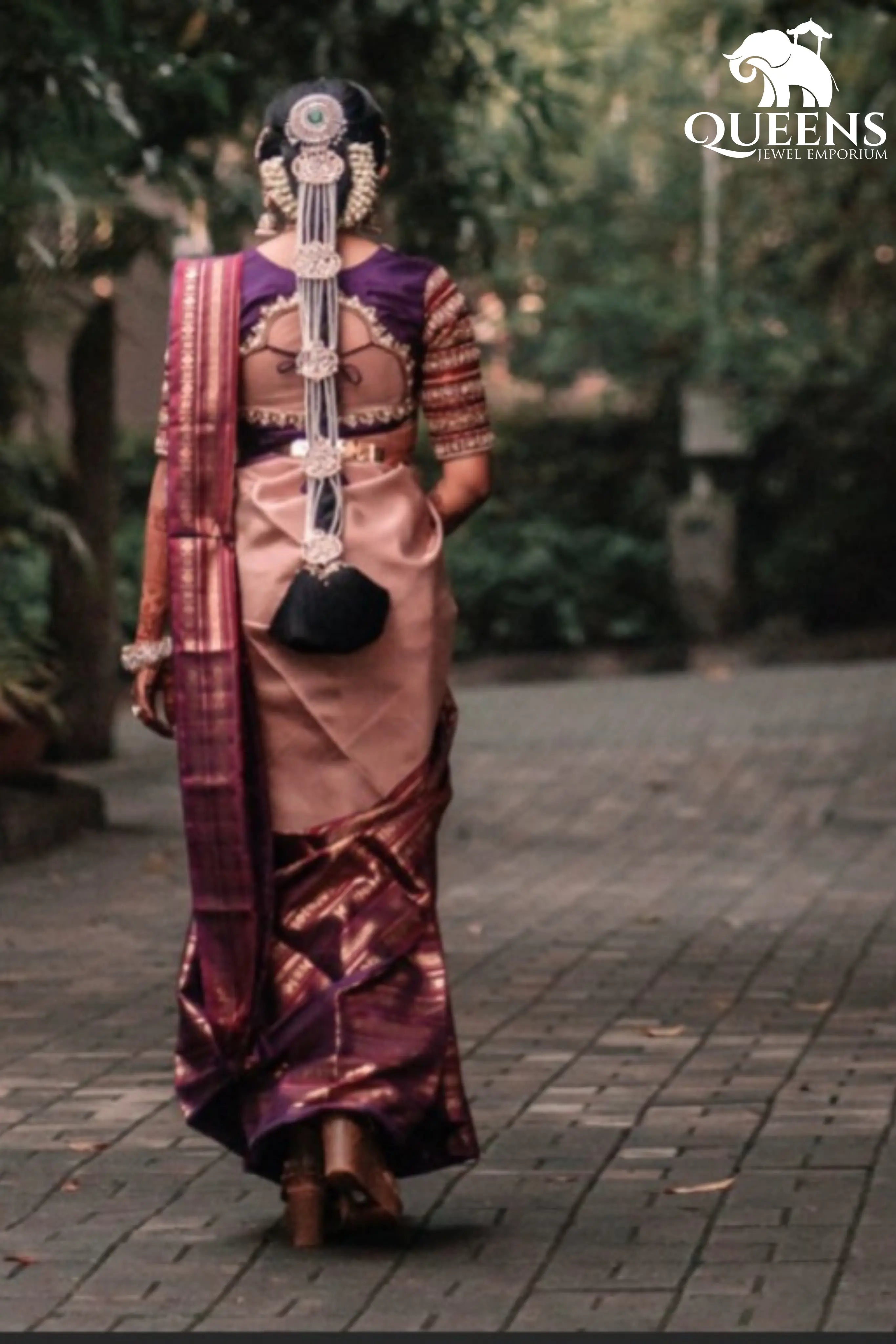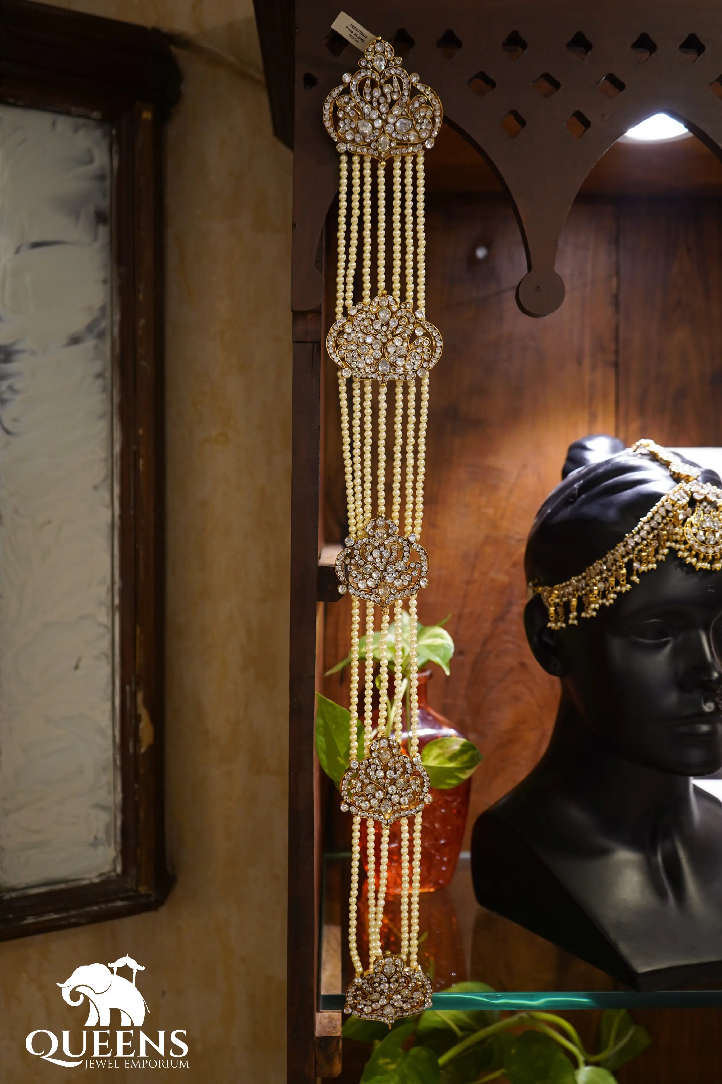 Expertly handcrafted and adorned with sparkling zircon stones, KOSALAI JADAVILLAI is a one-of-a-kind South Indian jewellery piece. Made of high-quality silver alloy and gold plated to perfection, its unique pattern and bridal look will add a touch of elegance to any outfit.