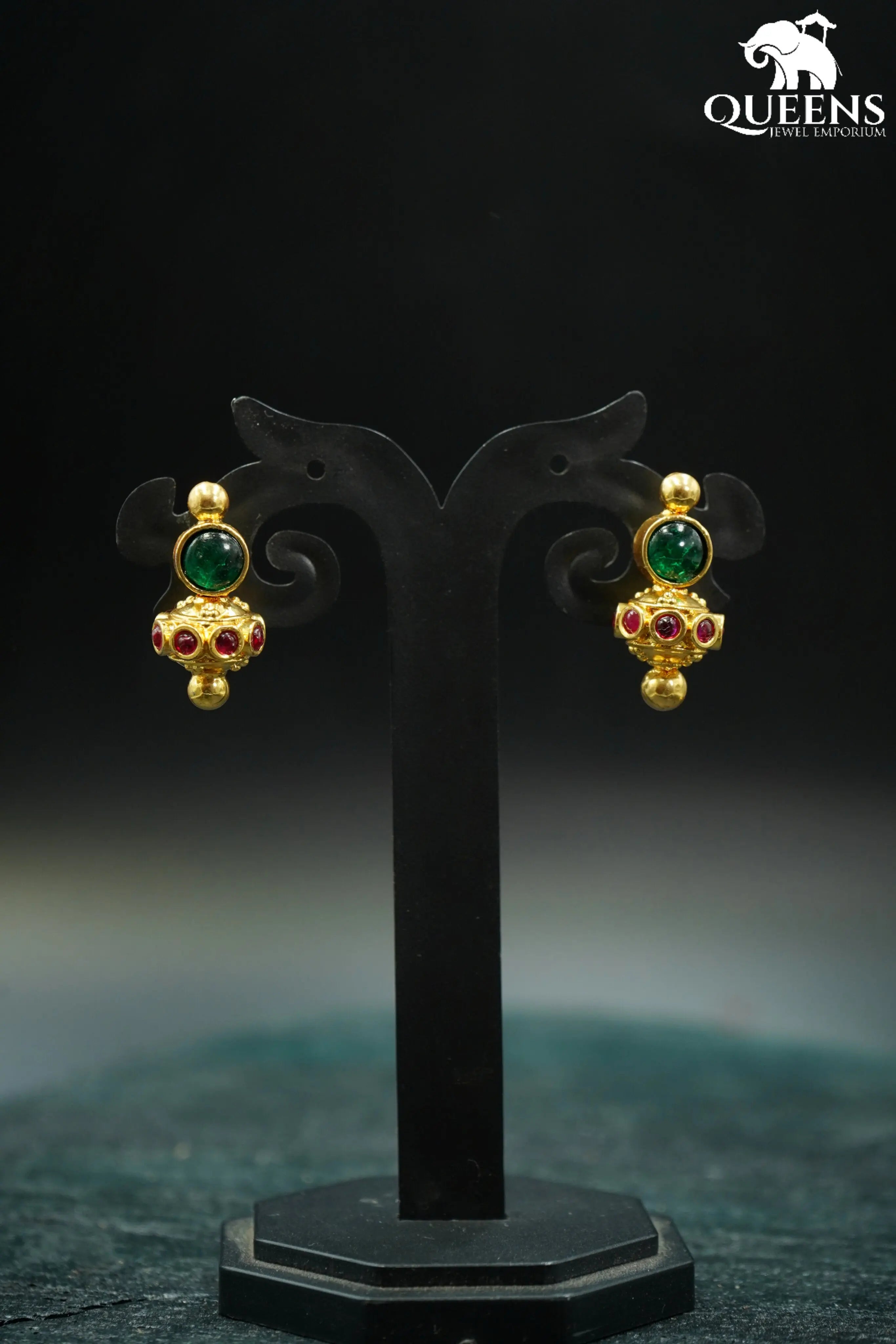 Introducing the KRISHA STUD, a classic and timeless piece of traditional jewelry. Made with Kemp stones and gold plating, it exudes elegance and sophistication. The South screw design adds a touch of cultural significance. Upgrade your style with this simple yet luxurious stud.
