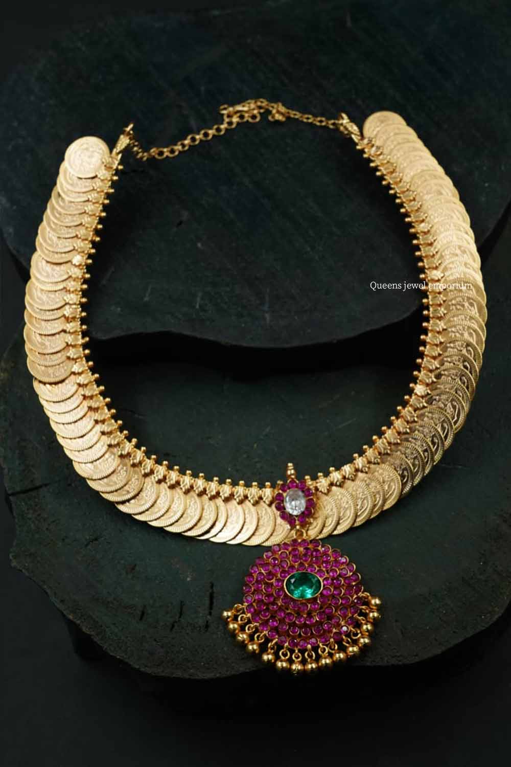 A majestic Nagas Lakshmi motif necklace adorned with graceful chettinad workmanship , radiating timeless charm. Perfect for weddings and festive wear, this heirloom-inspired piece brings goddess-like elegance to your look. Truly a treasure to pass down for generations, handcrafted by our expert artisans at Queens Jewel Emporium.
