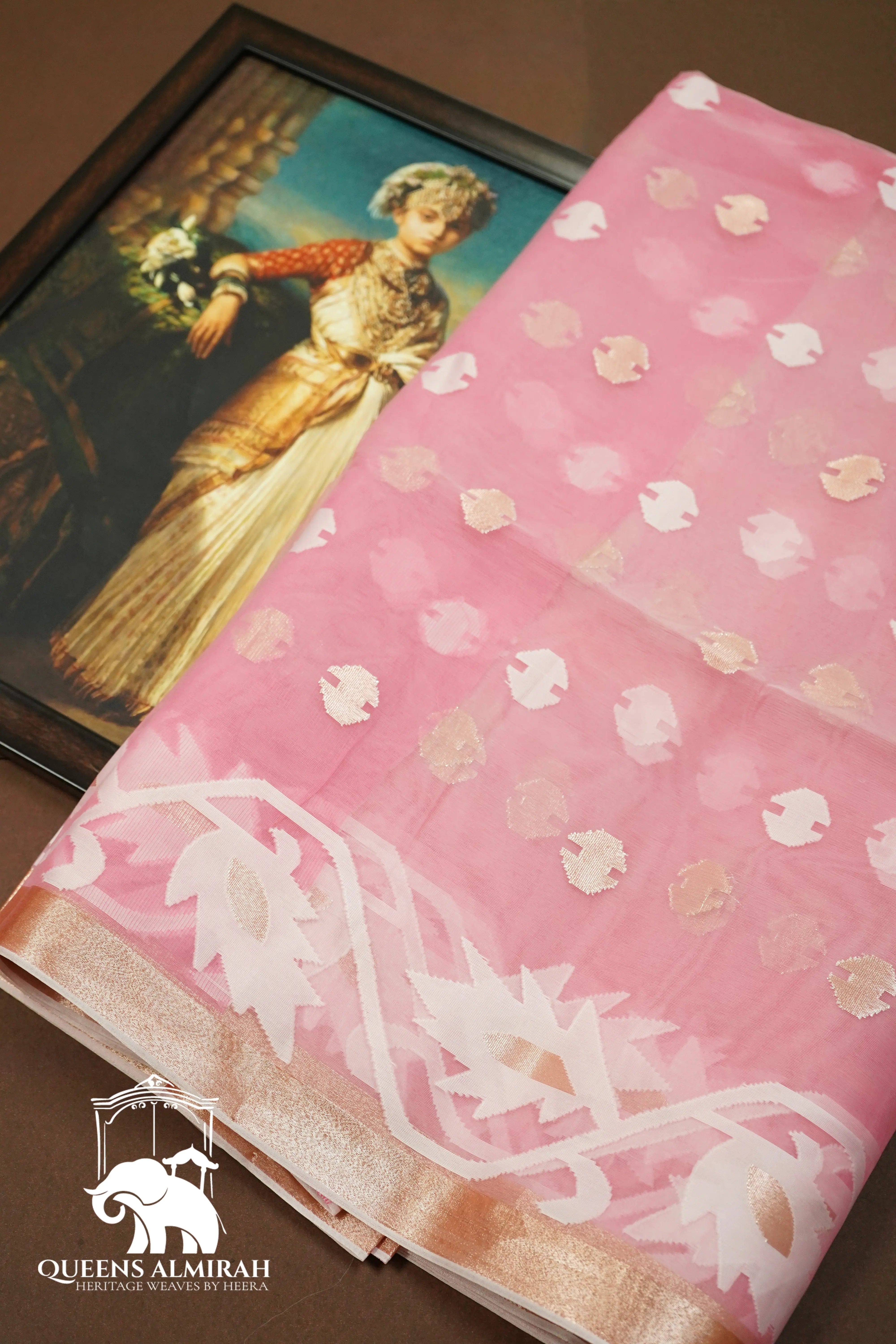 Expertly crafted, the LILLY PINK MUSLIN JAMDANI SAREE blends luxury and trend in a soft and easy-to-wear fabric. The intricate classic view adds a touch of elegance, making it perfect for any occasion. Experience timeless beauty in this saree.