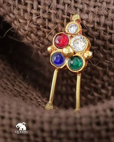 A traditional press type bullaku with multi stones to be worn in the bottom of your nose to match your traditional attires.
