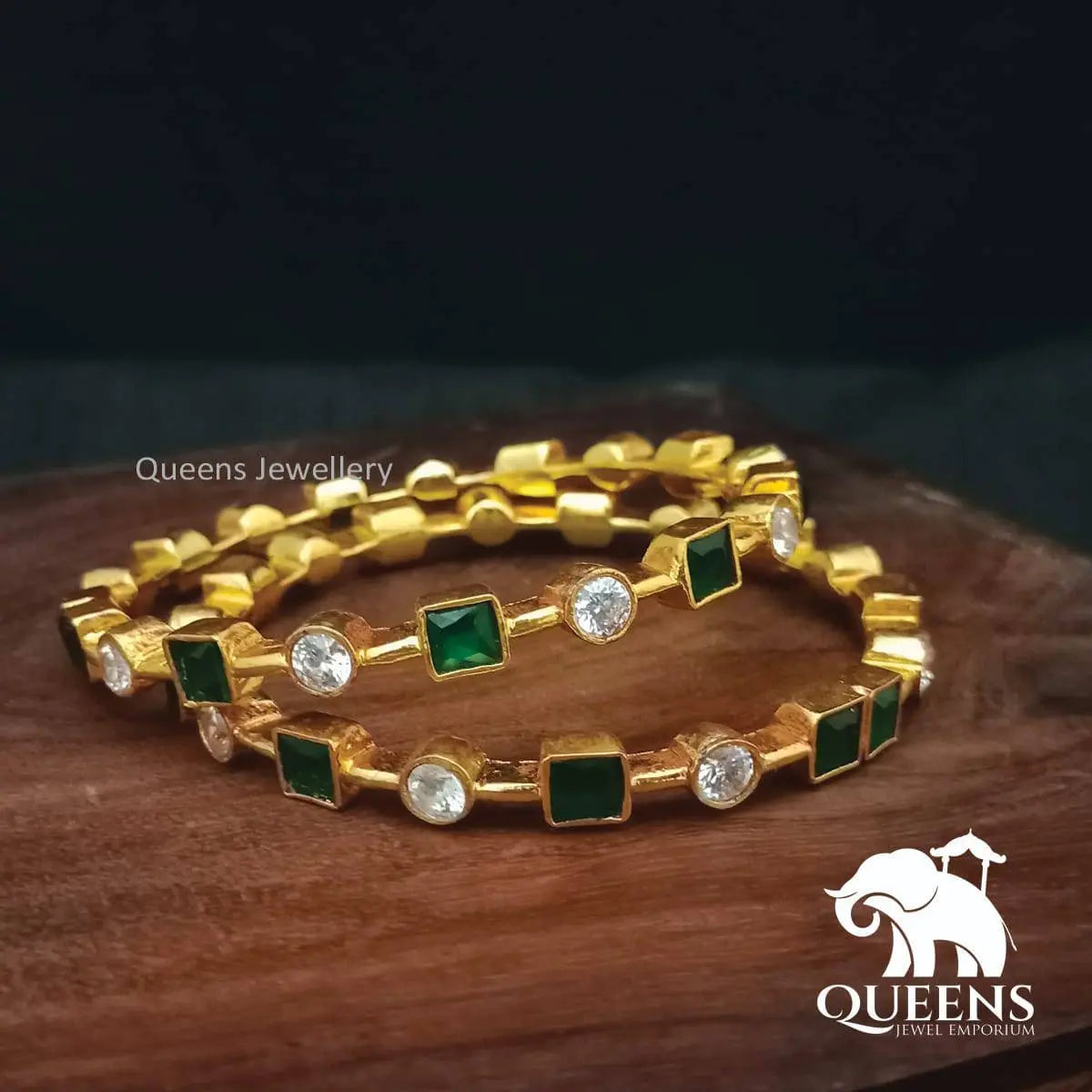 Presenting mekalai bangles- Traditional stone bangles handcrafted to perfection studded with green and white zircons.