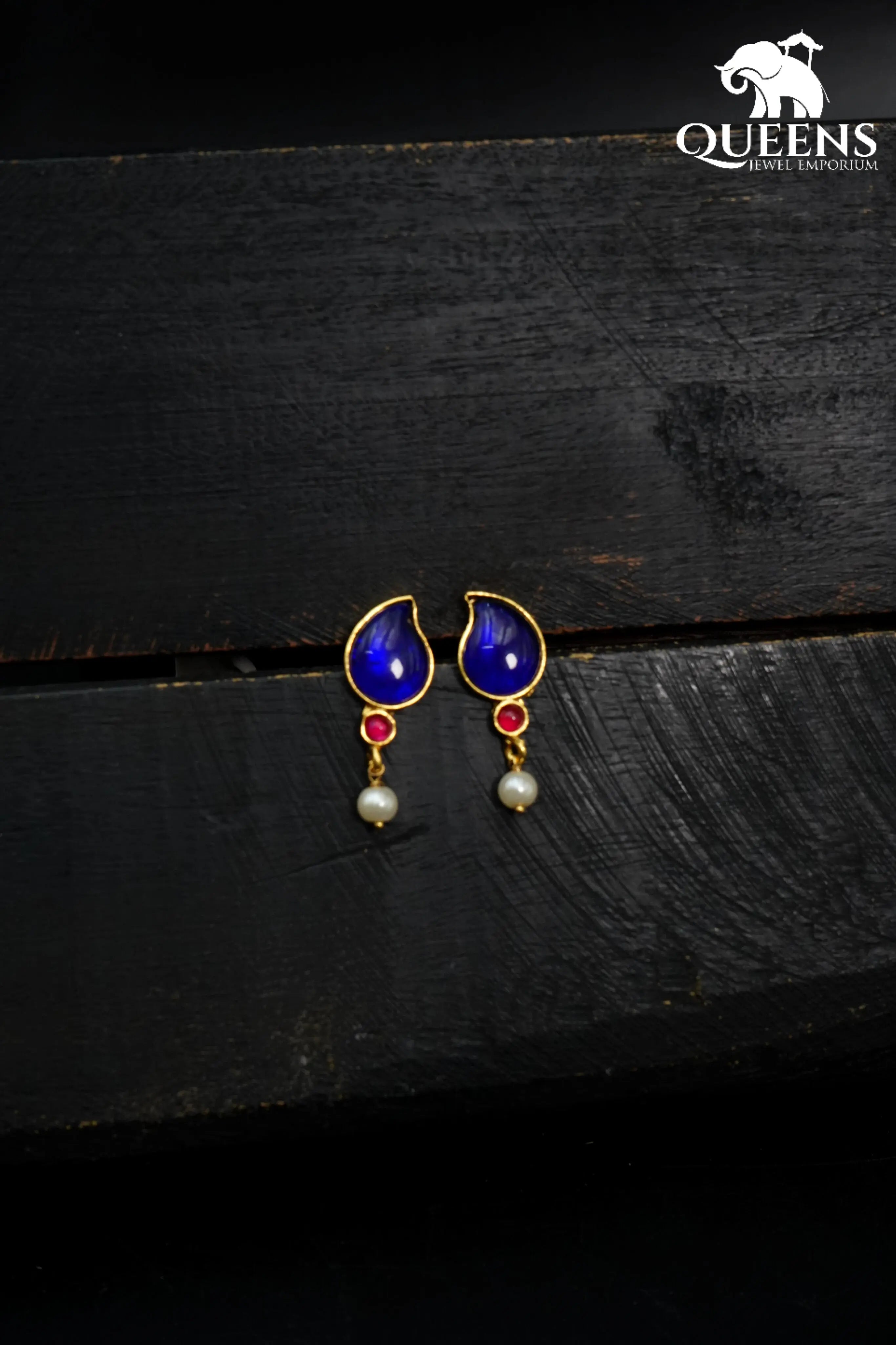 This traditional South Indian necklace features a striking combination of blue kemp stones and pearl balls, creating a luxurious gold look. Expertly crafted, the NEELAJA NECKLACE showcases the perfect blend of elegance and cultural significance, making it a timeless addition to any jewelry collection.