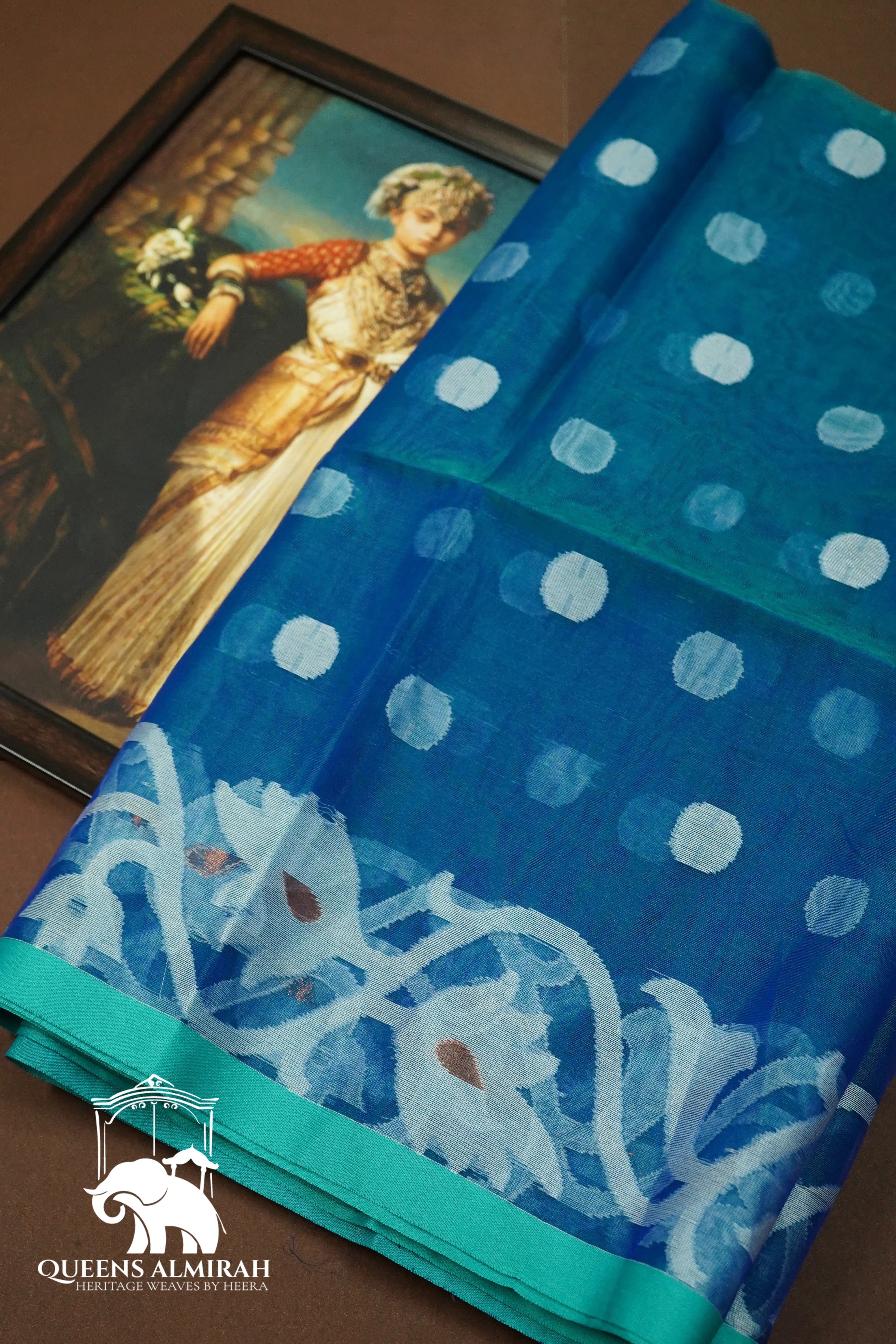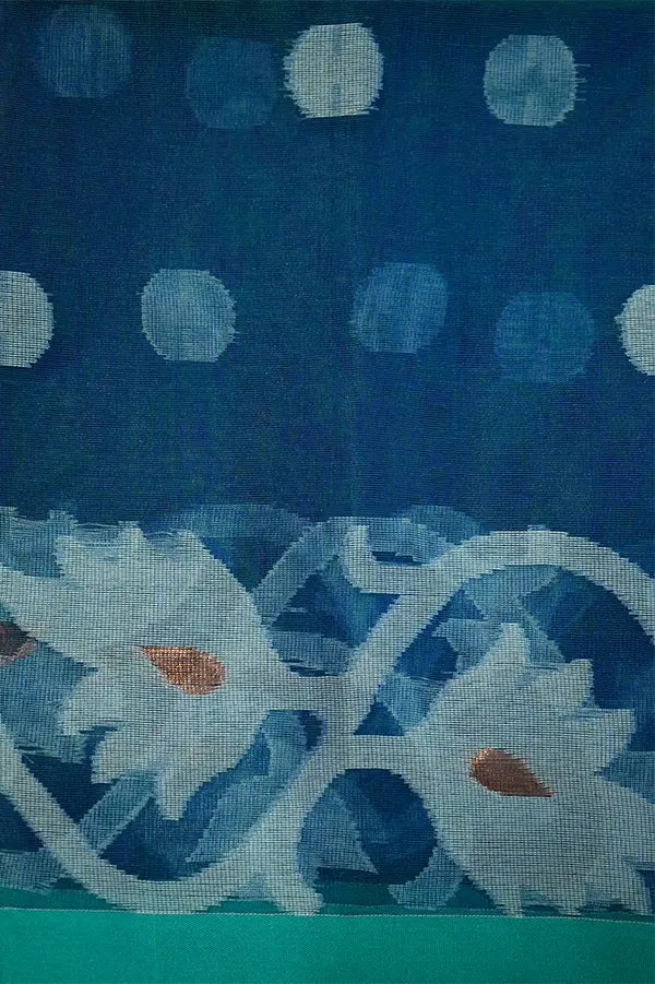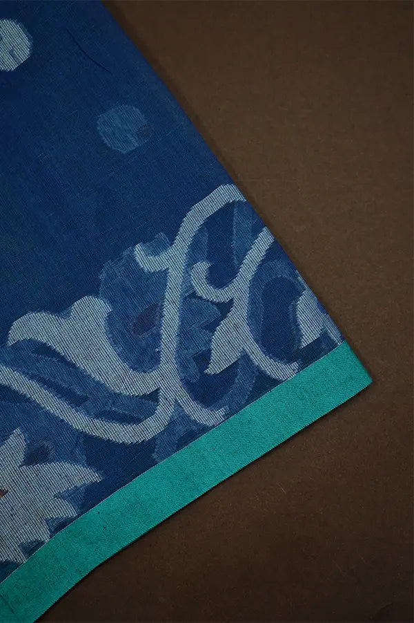 Expertly crafted and intricately detailed, our PEACOCK BLUE MUSLIN JAMDANI SAREE is a must-have for any fashion-forward wardrobe. Made from a luxurious and soft muslin fabric, this saree features stunning classic view and a trendy attached blouse. Elevate your look with this timeless piece.