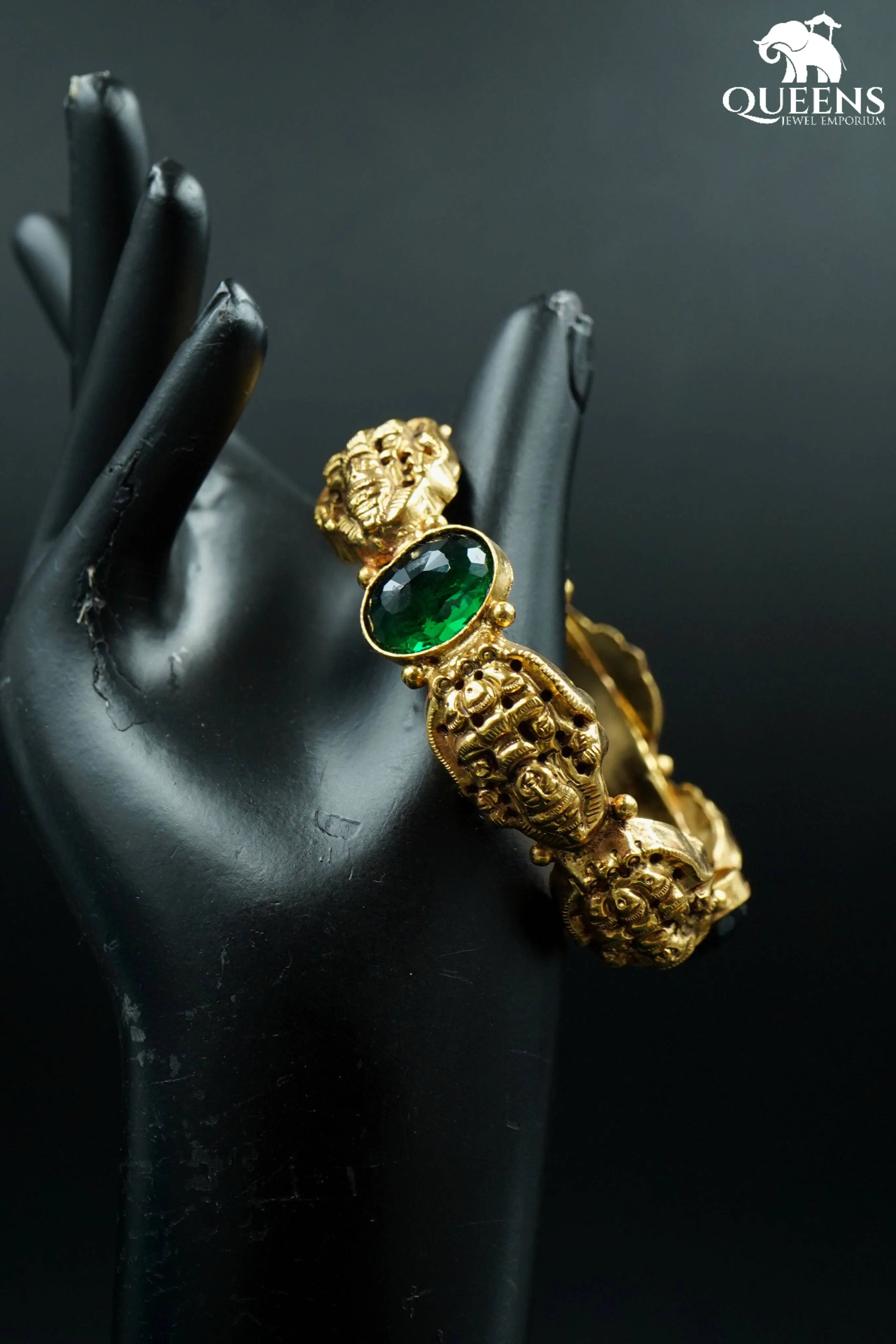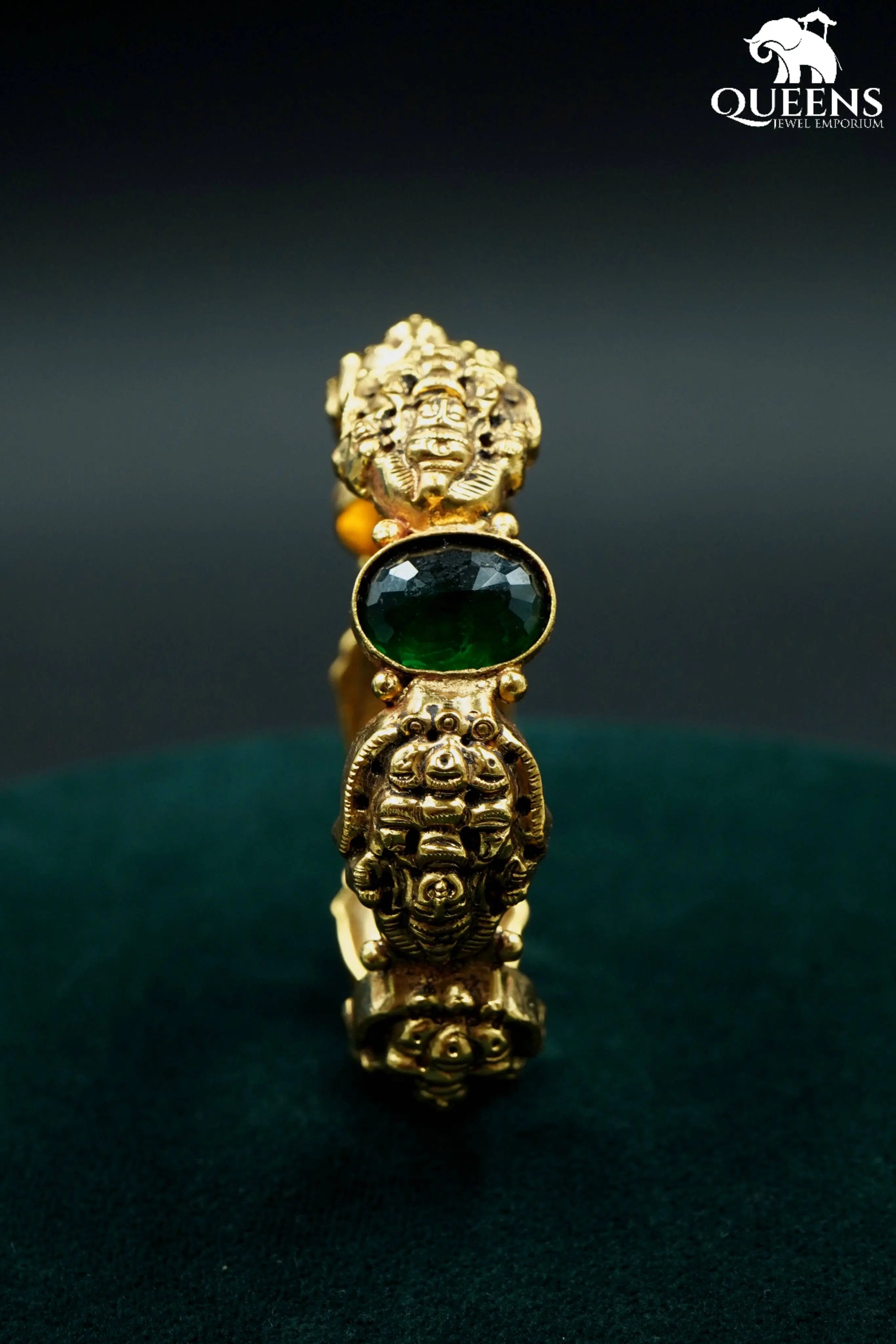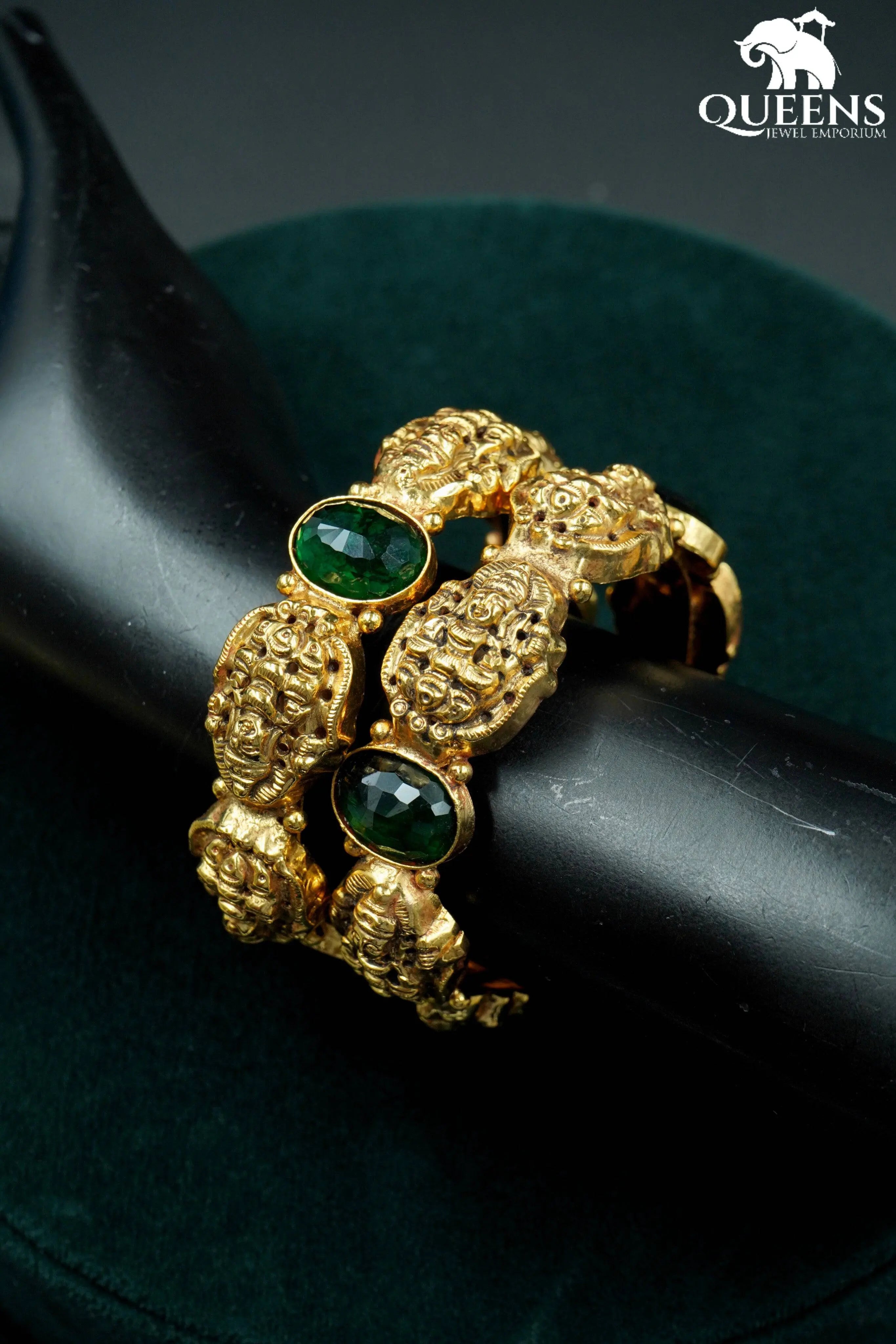 Embrace the timeless elegance of South Indian jewellery with the Green Kemp Nagas Bangles featuring the Lakshmi motif. These captivating bangles are a stunning fusion of vibrant color, cultural symbolism,Special occasion for onam.