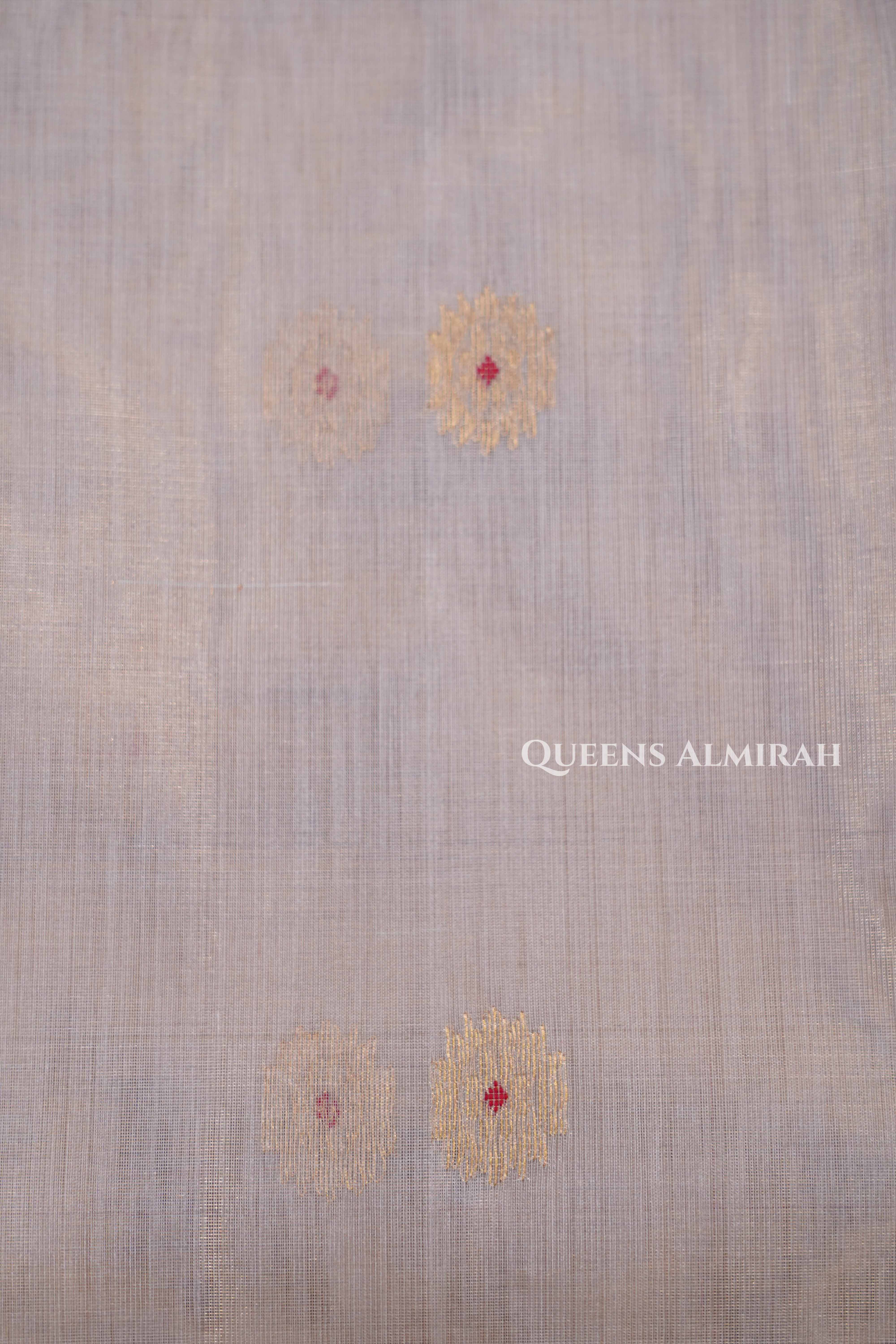 Dress to impress with our Sandal With Red Chanderi Katan Silk Saree. Intricate NAKSHI ZARI and BORDER designs, adorned with golden FLOWER and butta motifs, make this saree a must-have for any special occasion. Stand out in style and sophistication with this exquisite piece.