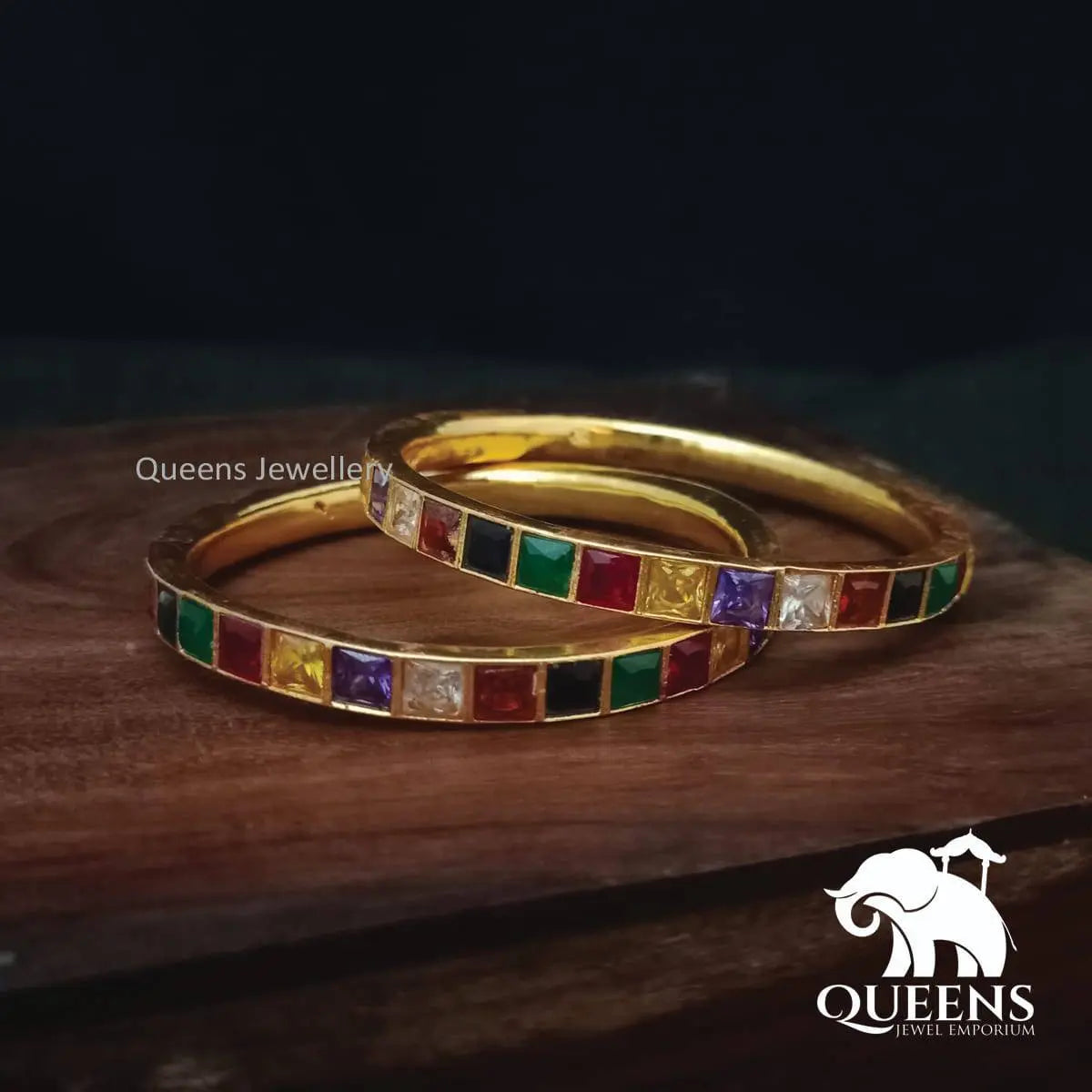 An elegant pair of sathura multi stone bangles set which can be paired with your navarathna sets.