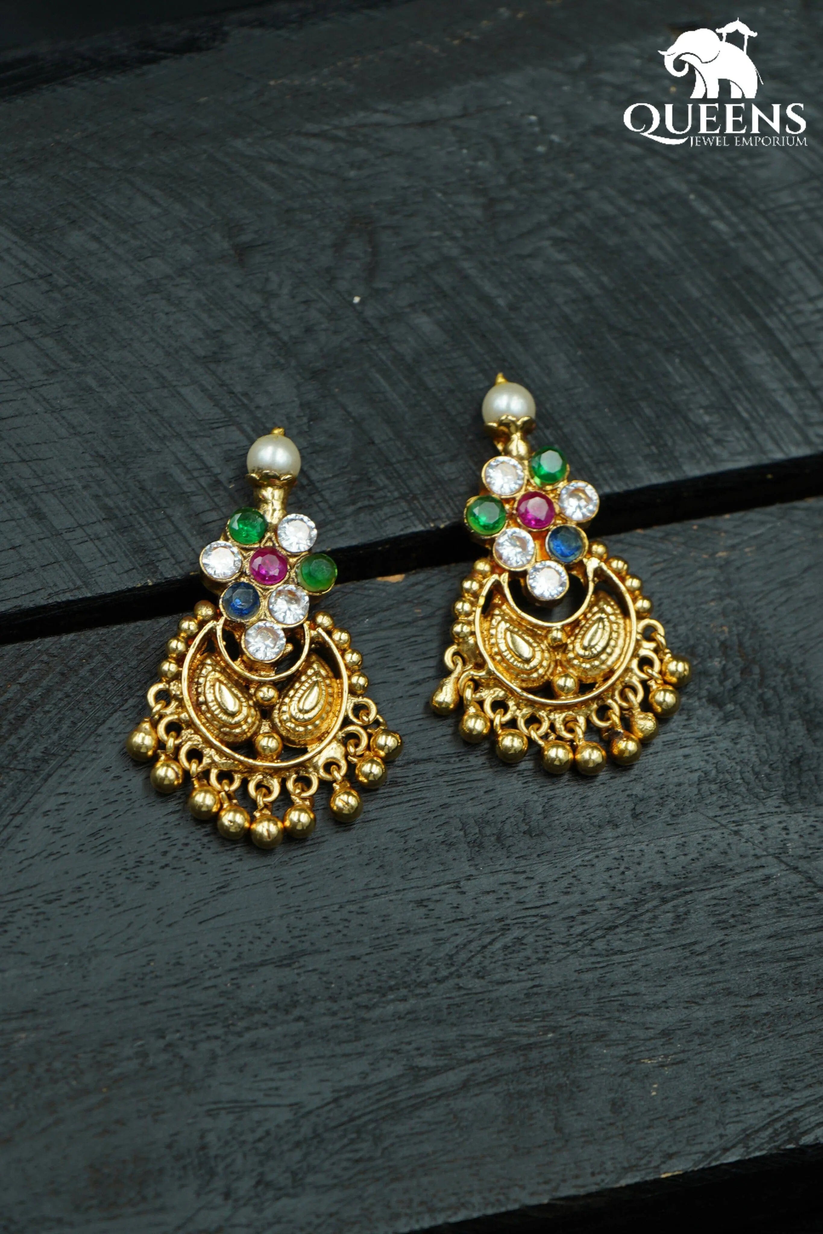 Chandbali earring are a traditional form of Indian jewelry that originated in the Mughal era. These earrings are known for their elaborate and intricate craftsmanship, featuring delicate filigree work, studded gemstones, and often incorporating other design elements