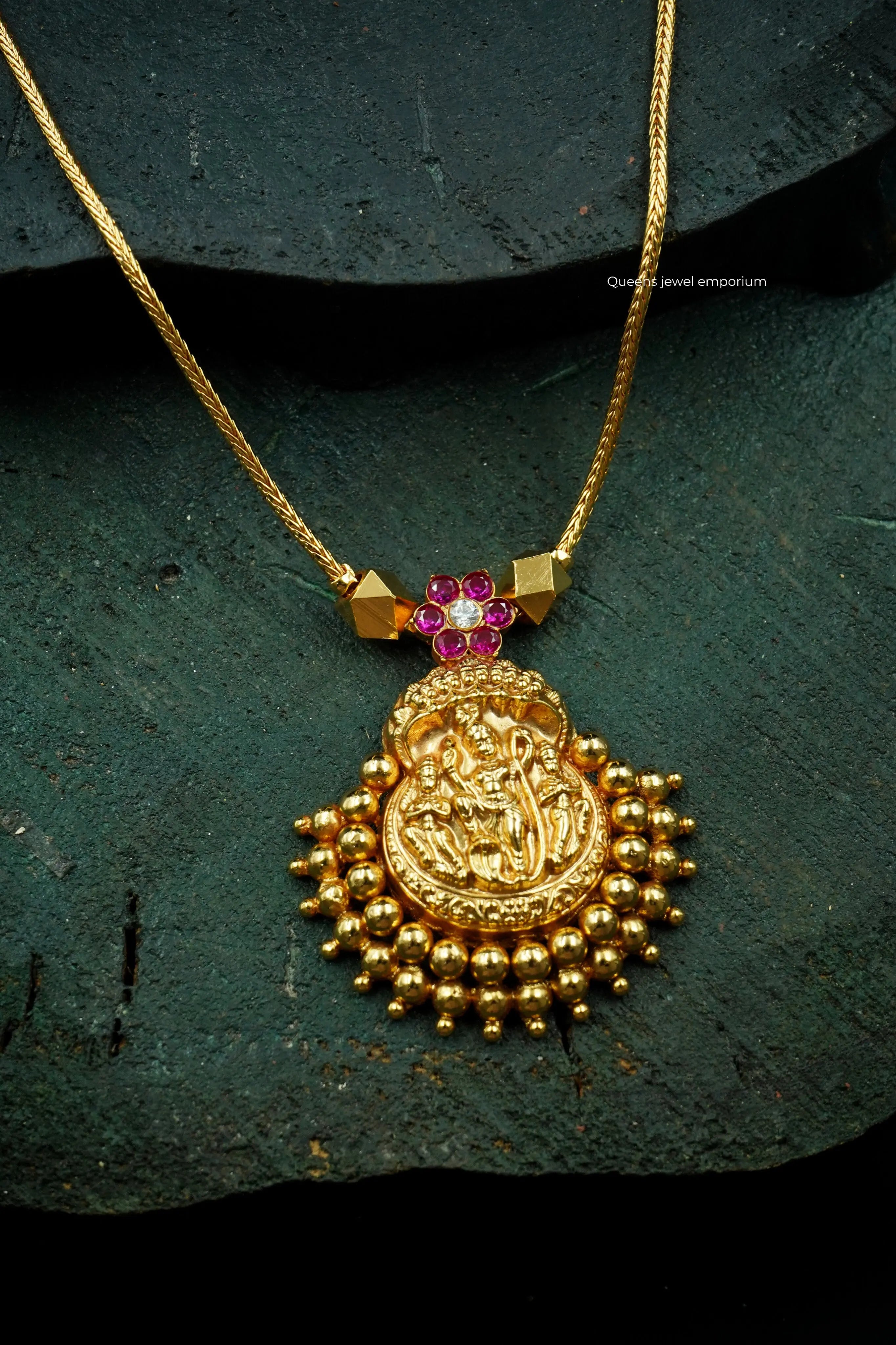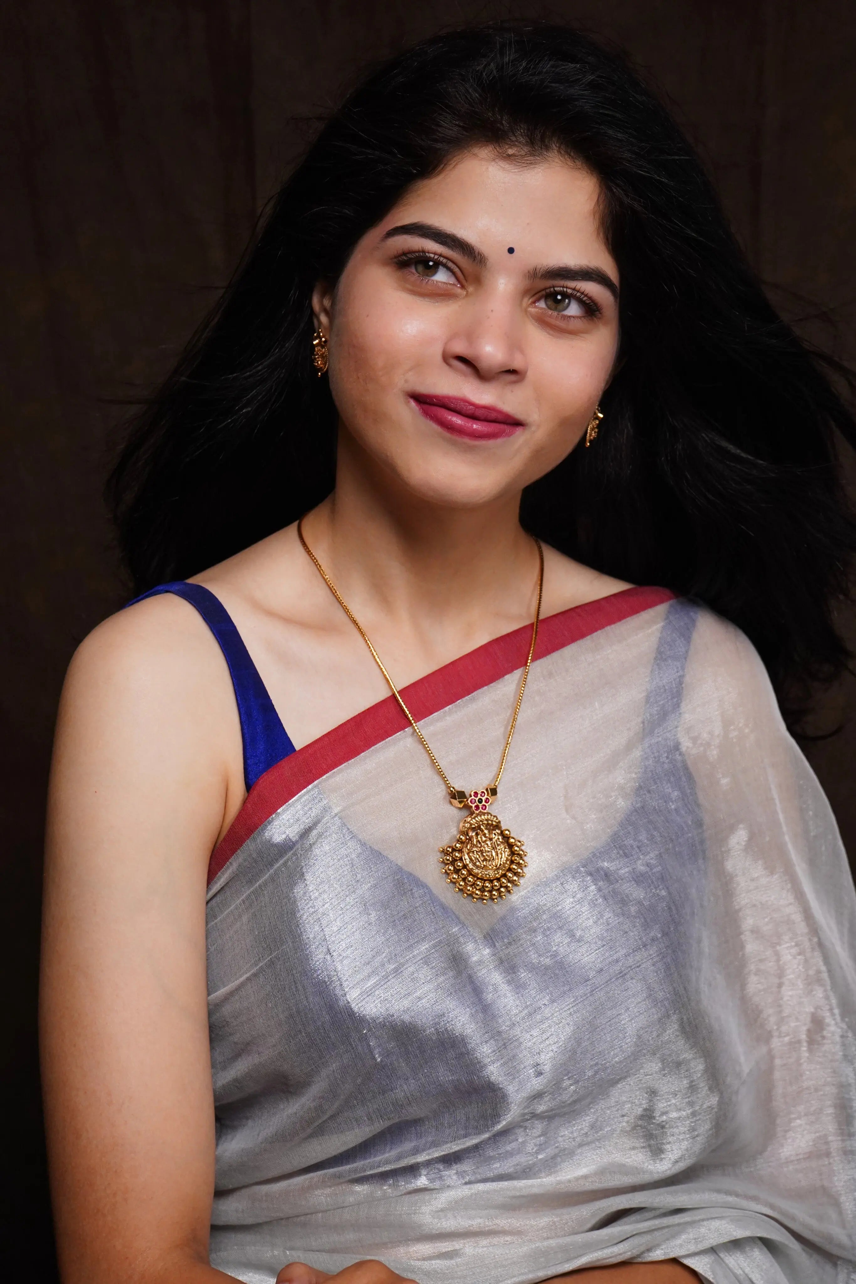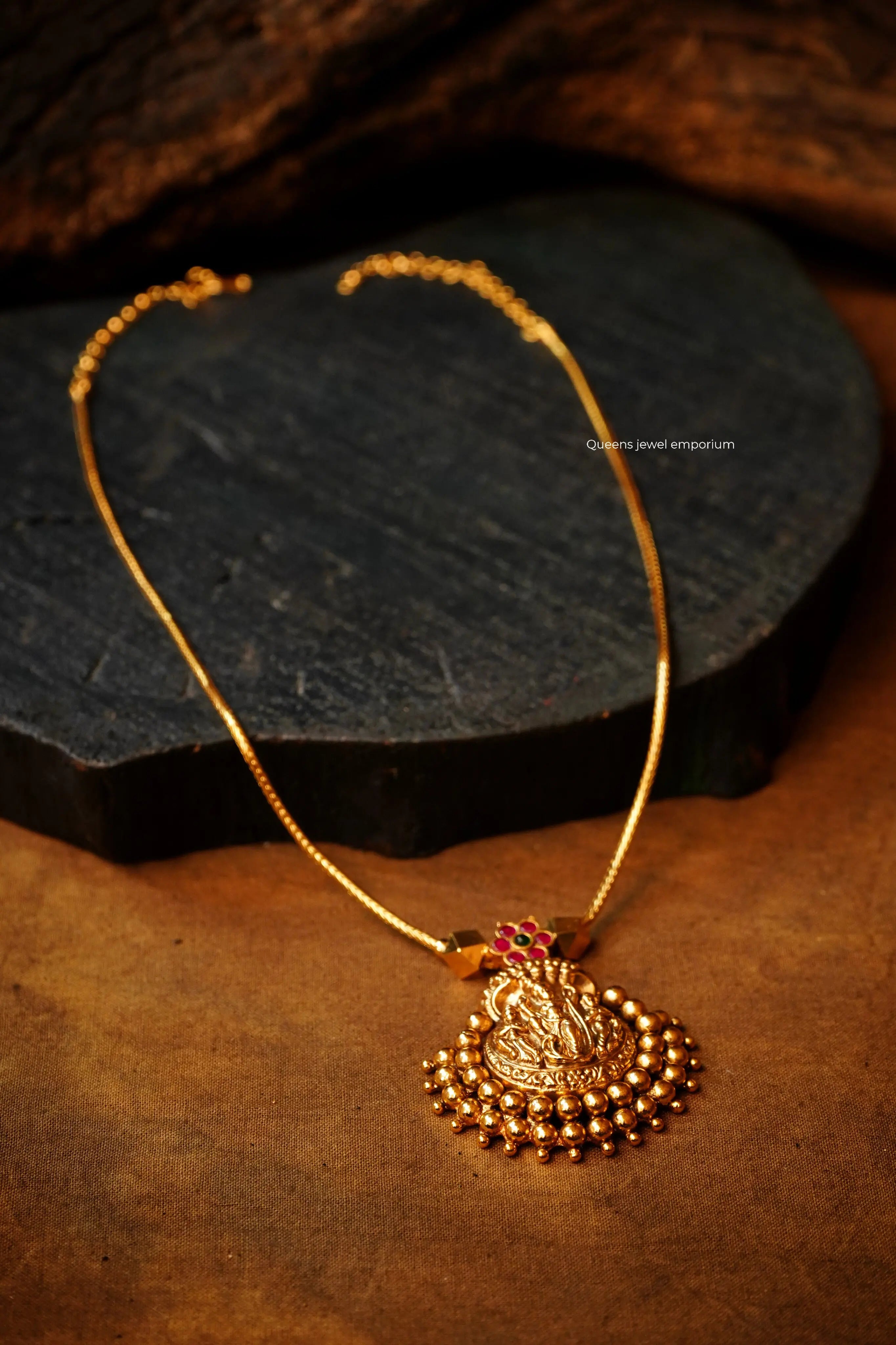 Introduce a touch of South Indian elegance to your ensemble with our SREE LEEL NECKLACE. Featuring two Nagas balls, a delicate floral design, and a Krishna pendant, this 24CT gold-plated silver alloy necklace adds a charming finish to any outfit. Perfect for traditional occasions and paired beautifully with sarees.