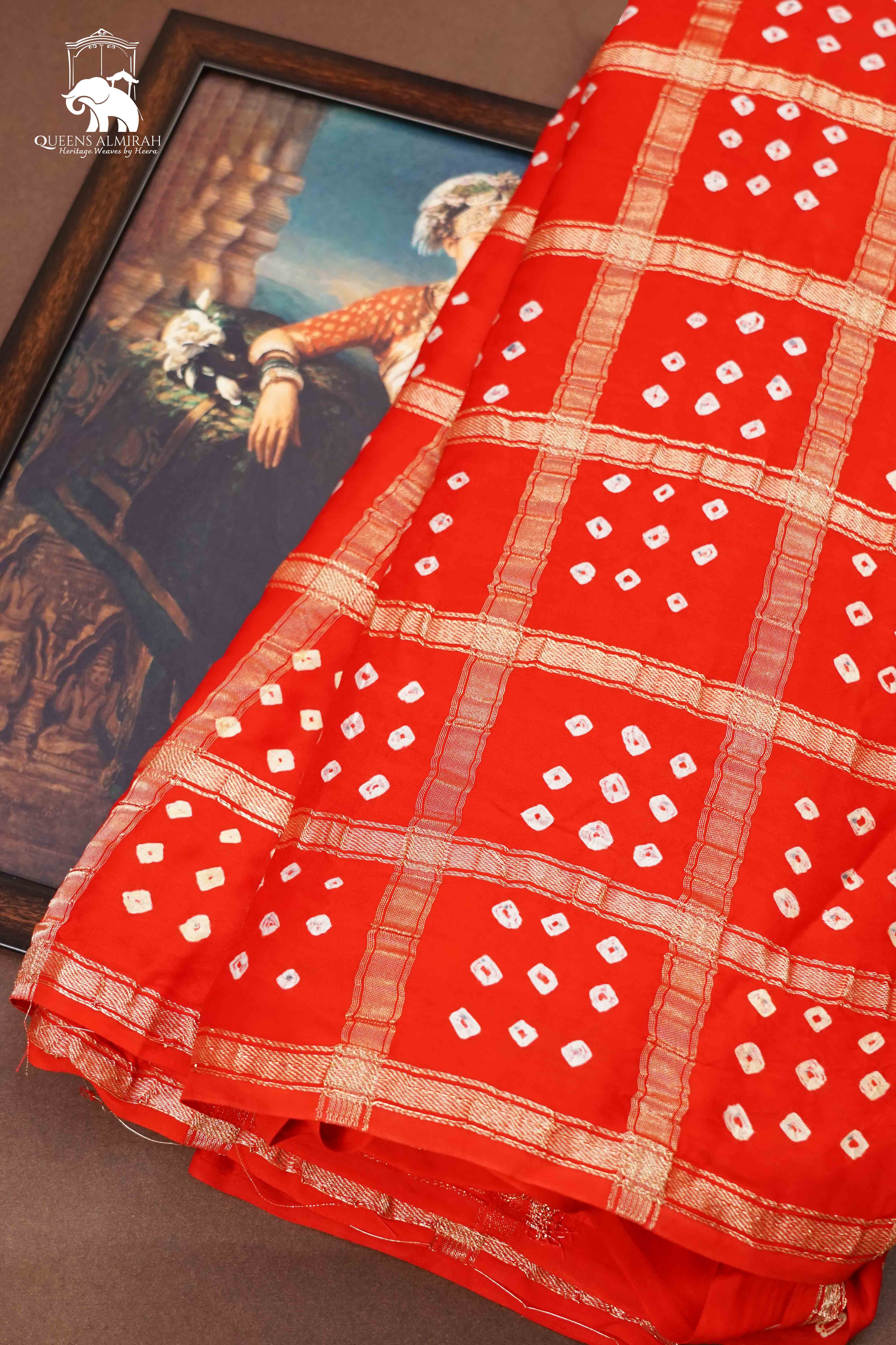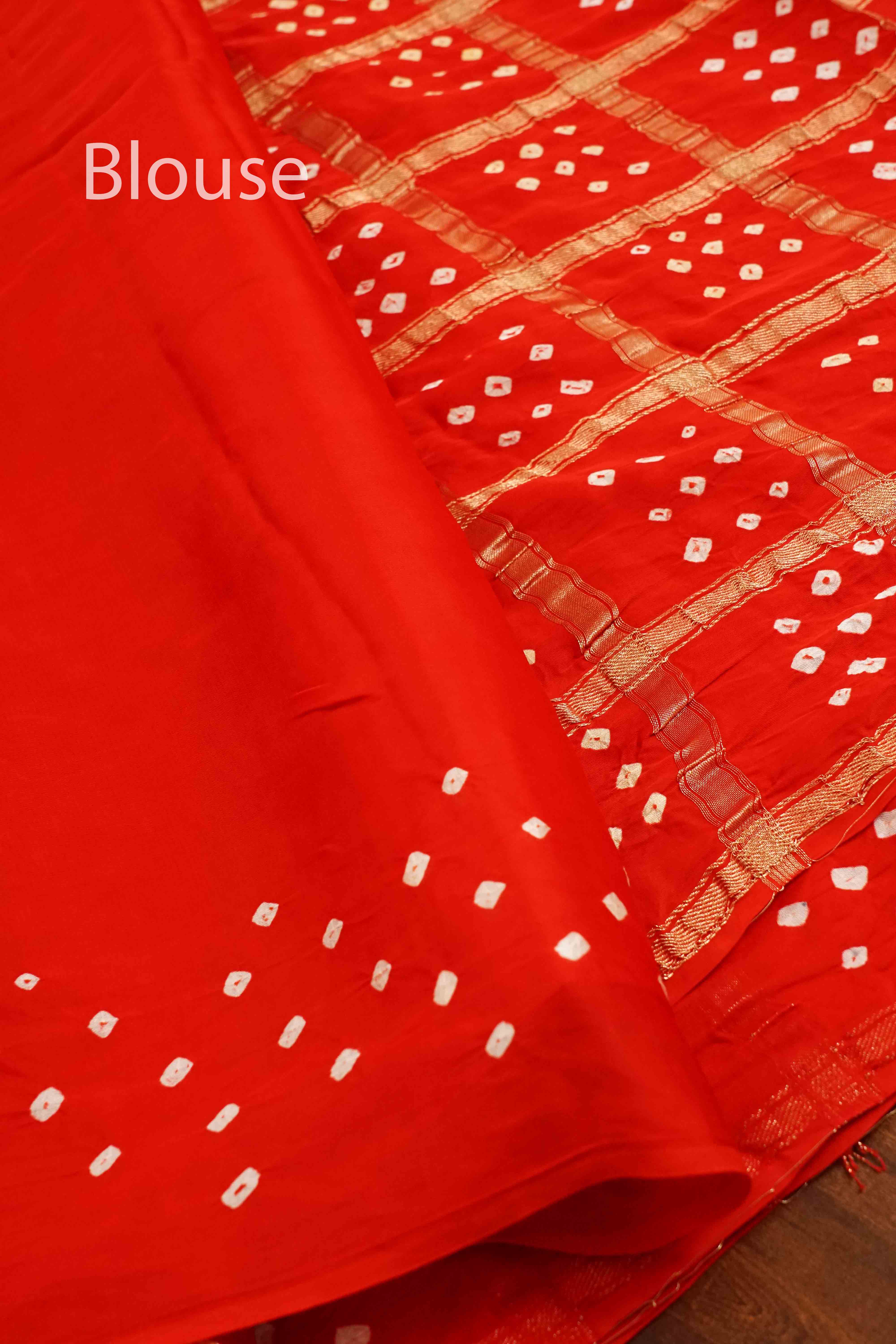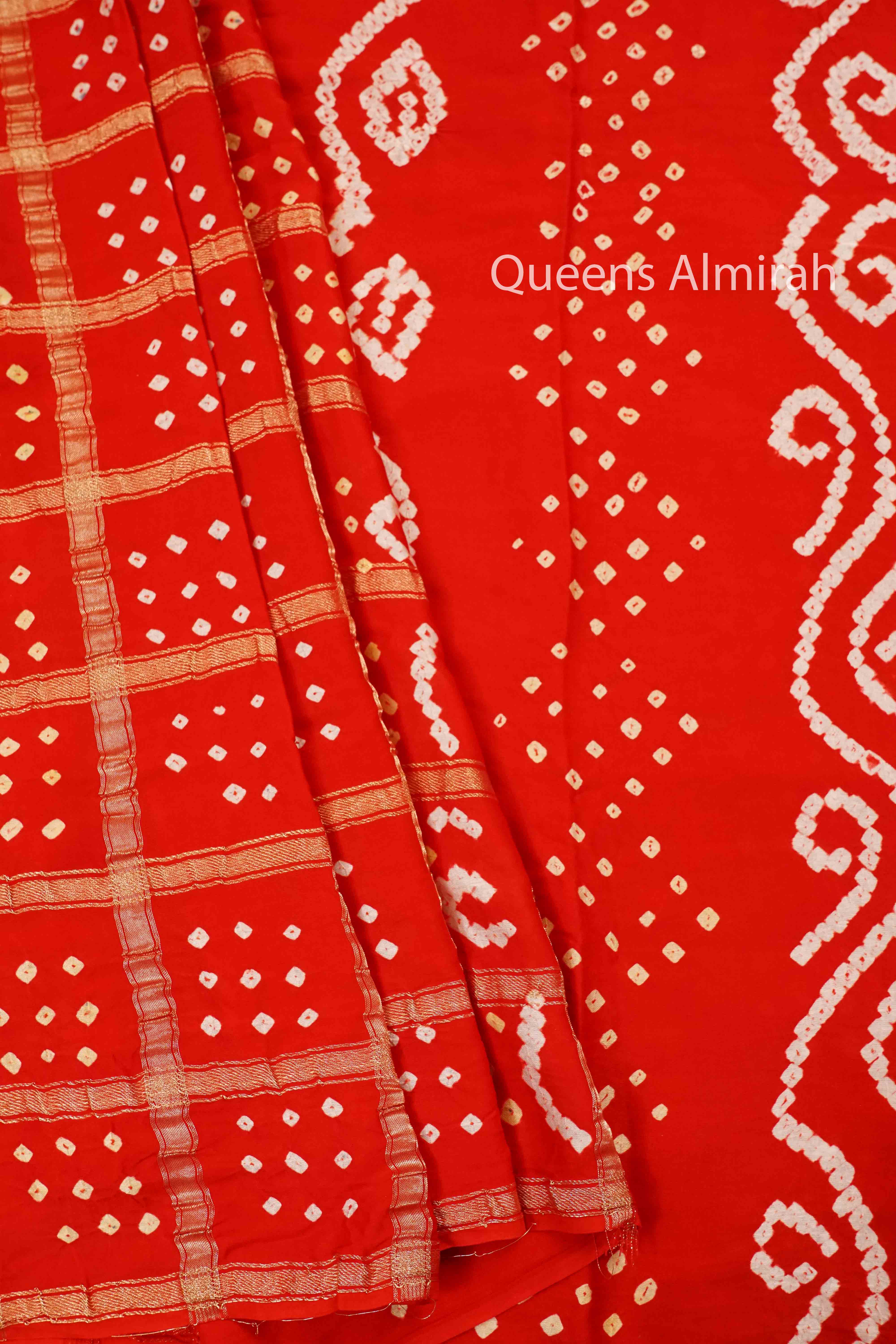 Stay comfortable yet stylish with our Tomato Red Modal Silk Saree. This checkered saree features a unique Gharchola design with beautiful buttas, providing a perfect blend of traditional and contemporary fashion. Made with luxurious modal silk, this saree offers both comfort and elegance.
