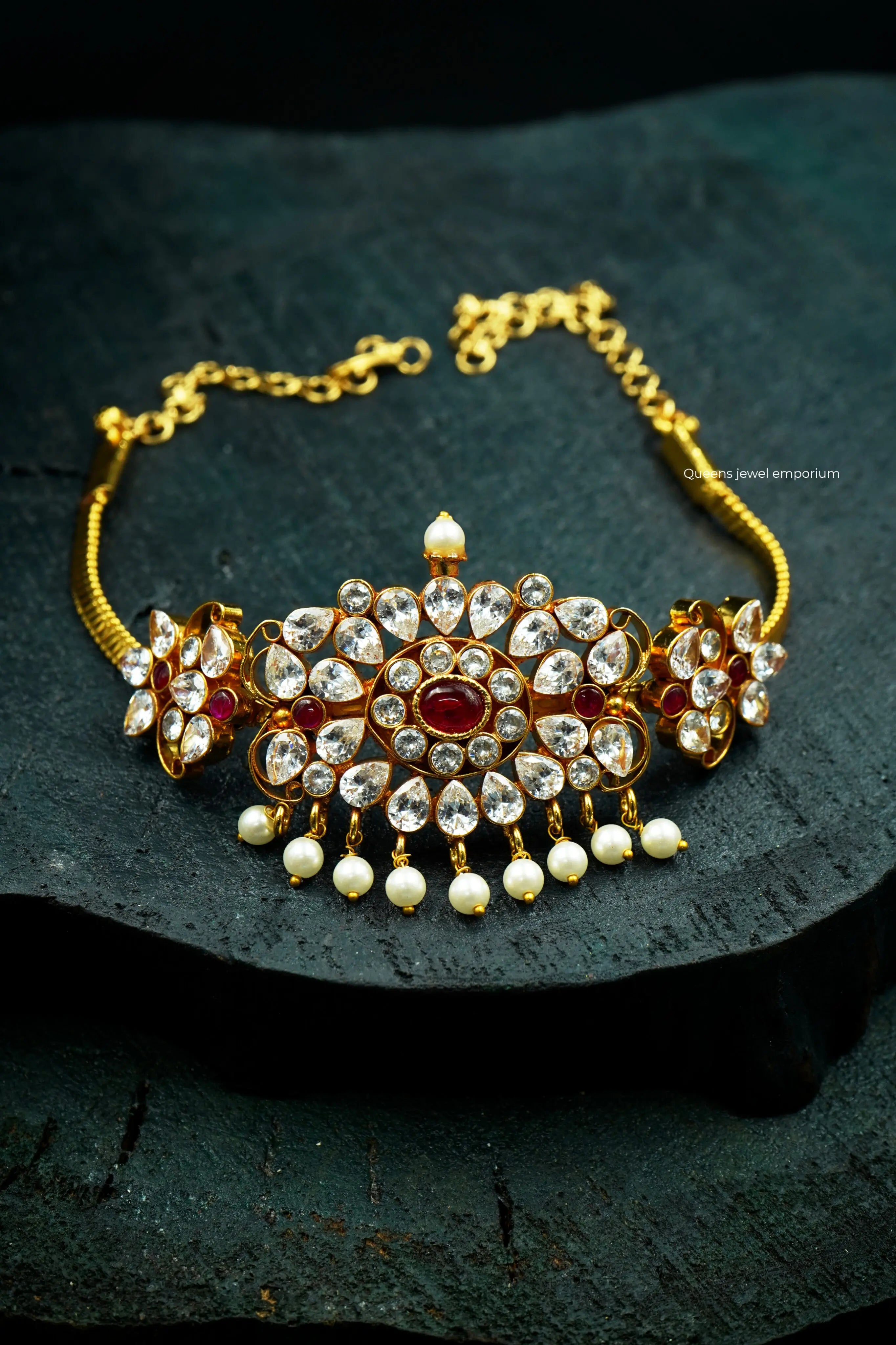 Introducing the UPASANA ZIRCON CHOKER, a stunning piece of jewelry that exudes sophistication and elegance. Made with precision and care, this choker features high-quality zircon stones that will catch the light and add a touch of sparkle to any outfit. Elevate your style and make a statement with this exquisite choker.