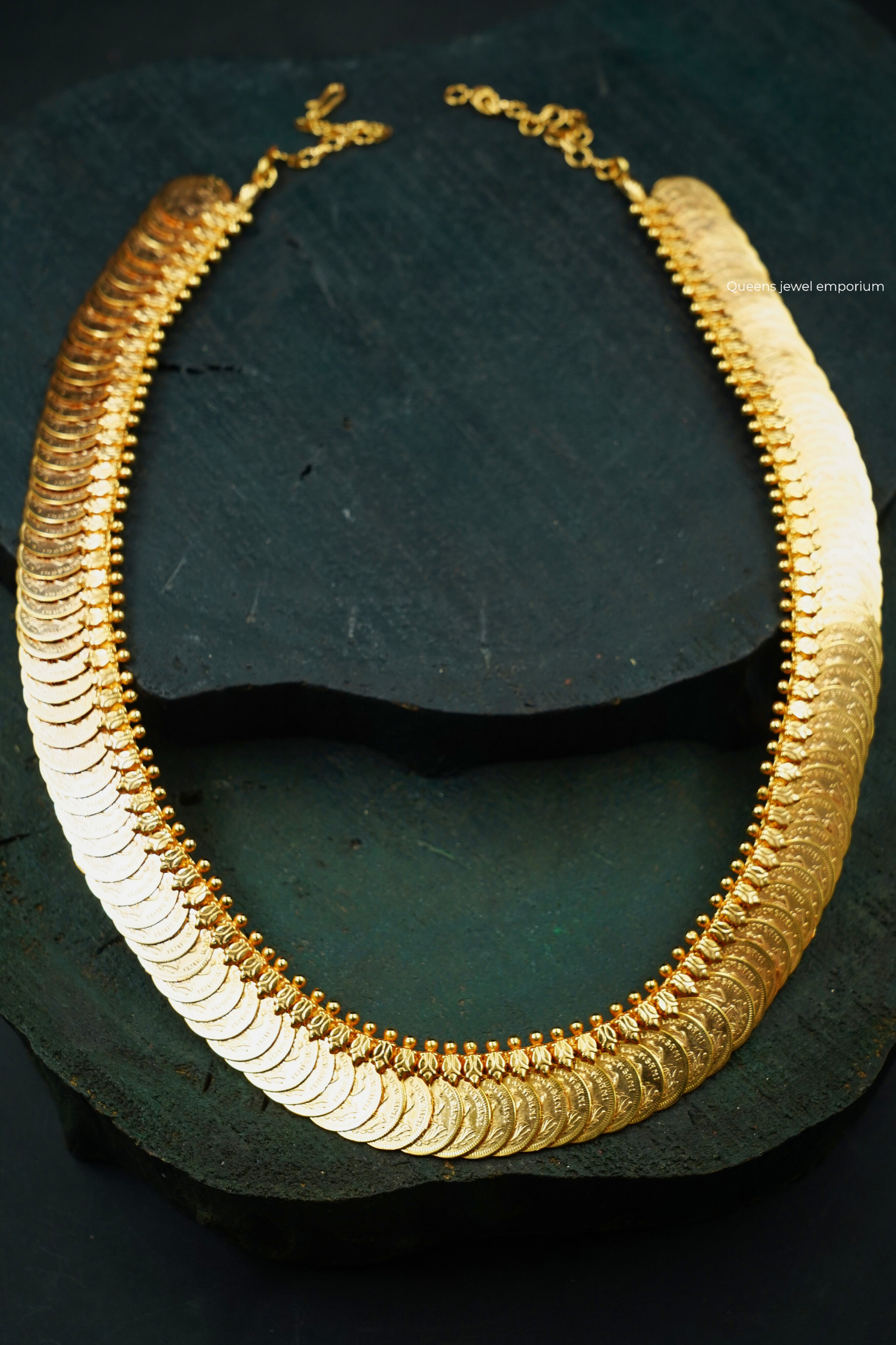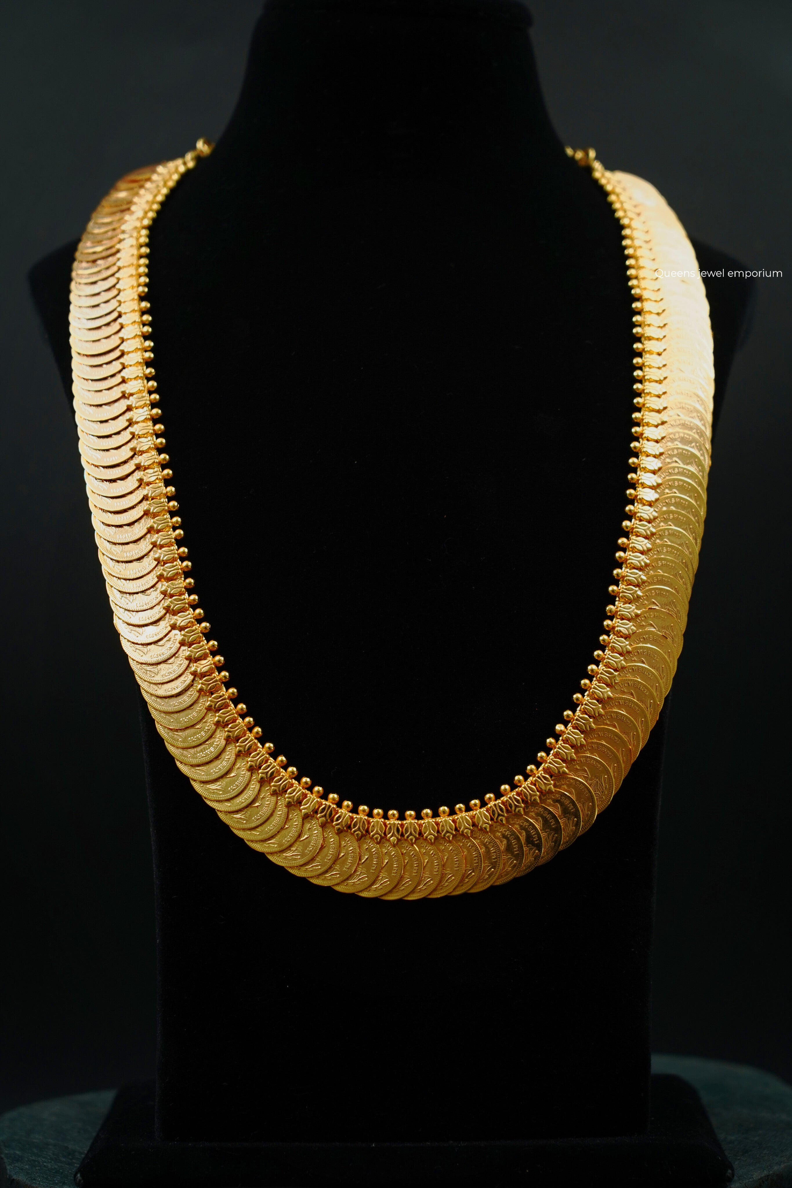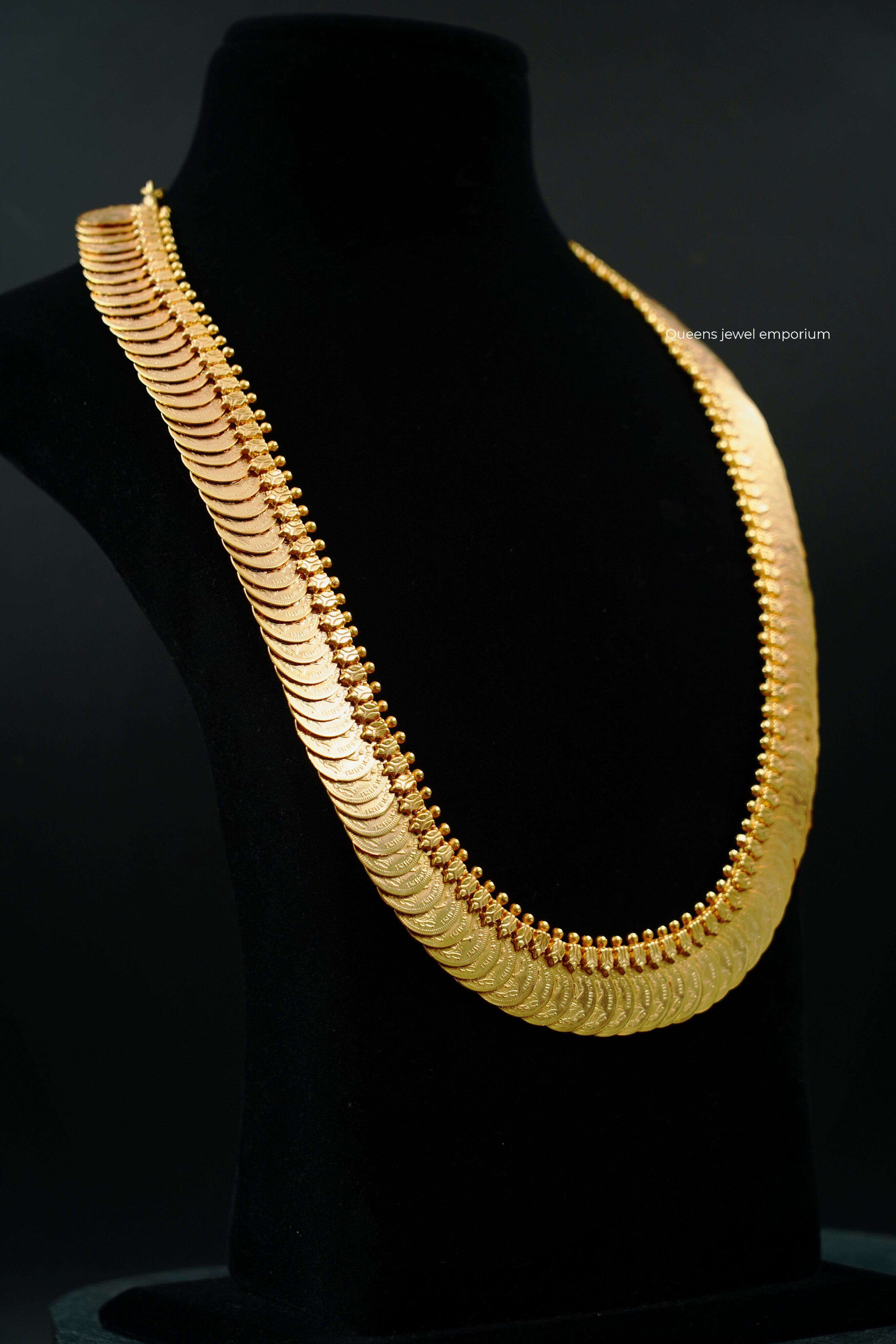 A majestic Nagas Lakshmi motif haram adorned with graceful leaf designs, radiating timeless charm. Perfect for weddings and festive wear, this heirloom-inspired piece brings goddess-like elegance to your look. Truly a treasure to pass down for generations, handcrafted by our expert artisans at Queens Jewel Emporium.