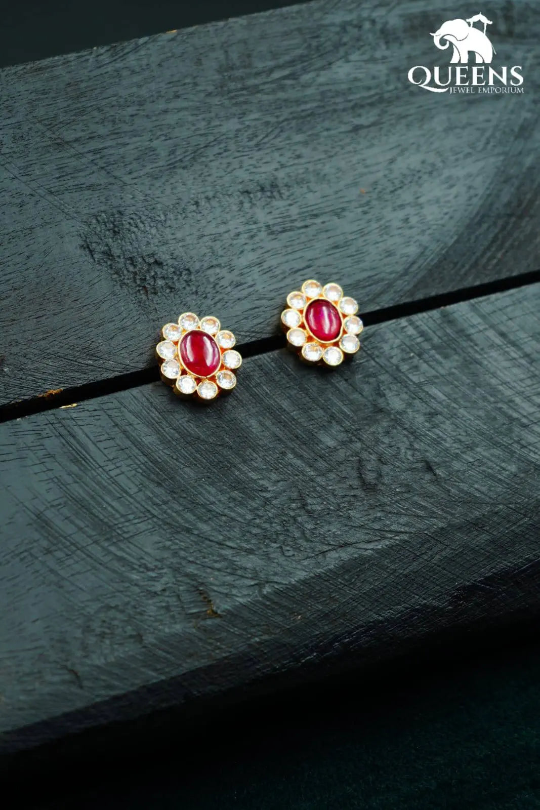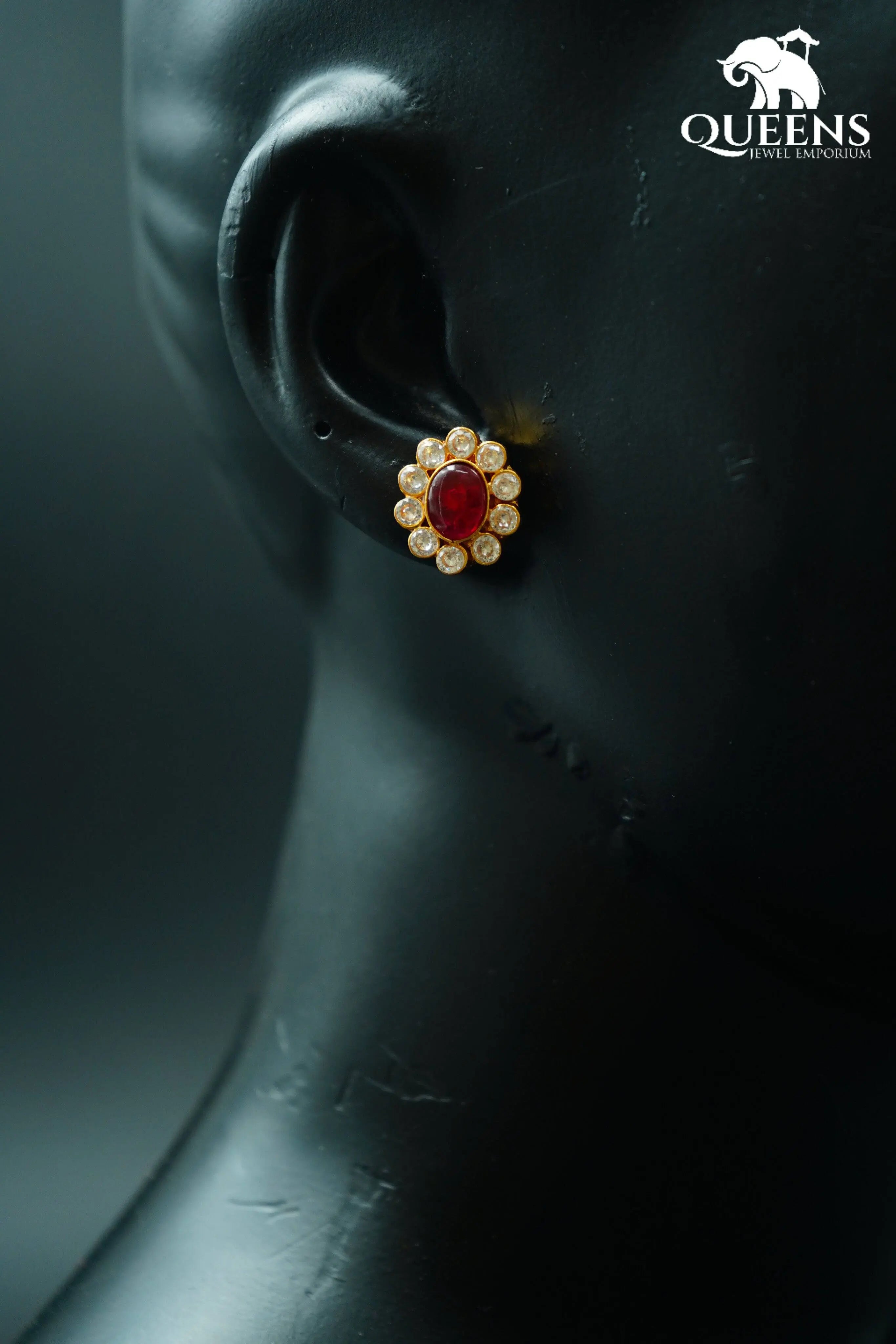 An elegant south Indian traditional earrings flaunted with red kemp stone and zircon stones for the touch of elegance!