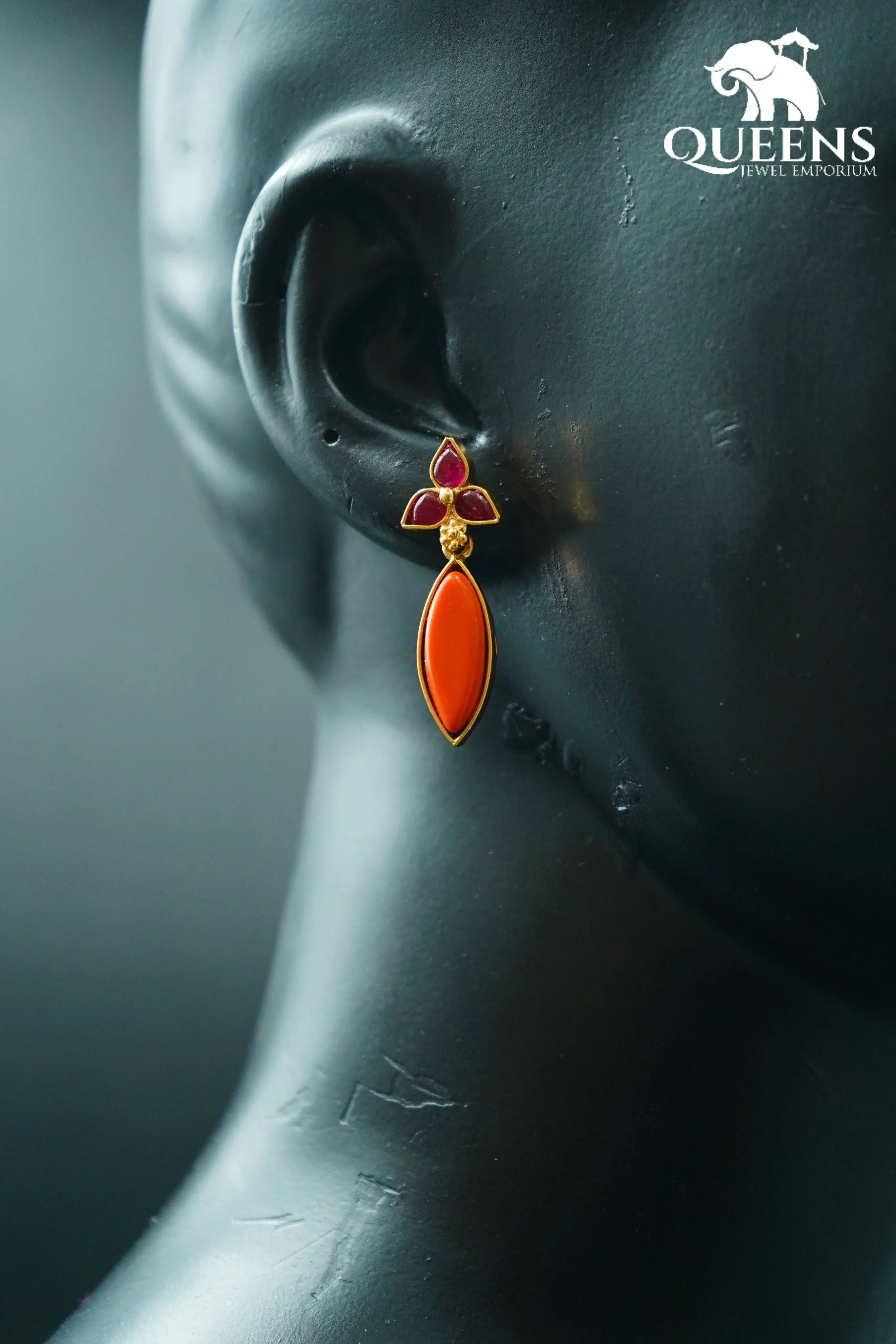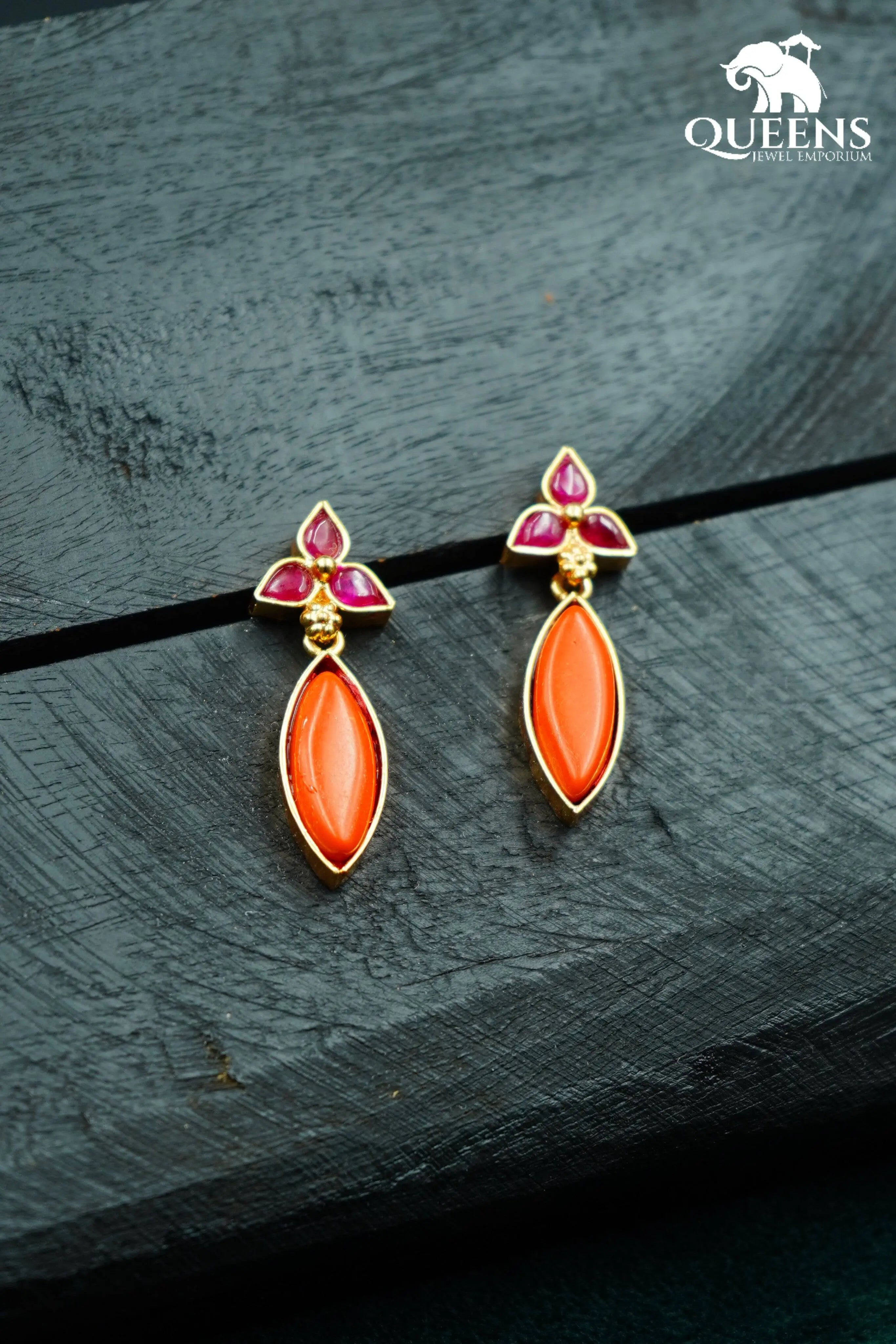 A simple yet classy earrings studded with Coral and kemp stones that can be styled with casual collections !
