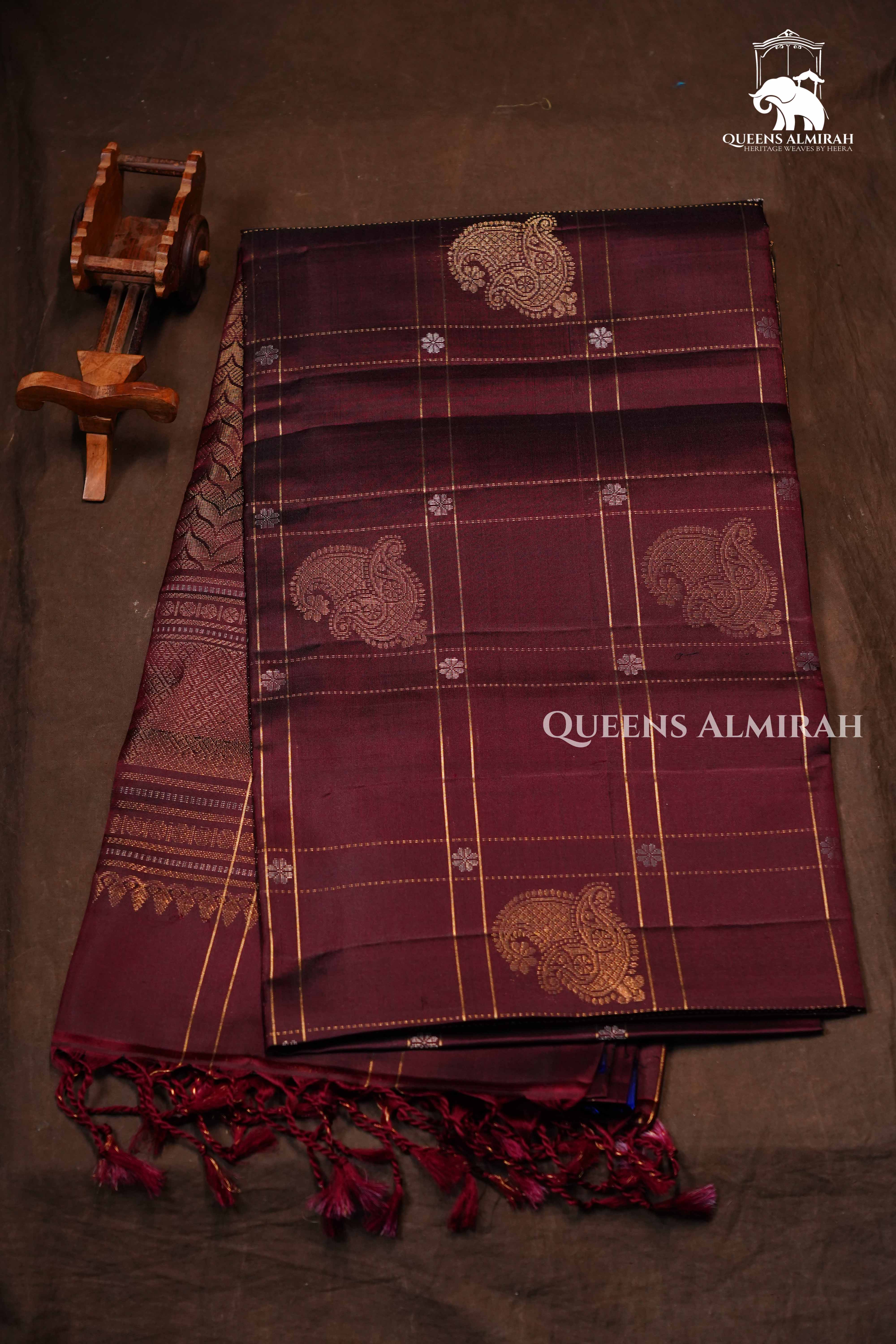 This elegant soft silk saree comes in a rich maroon shade, beautifully woven with golden zari stripes and delicate buttas. The body features traditional motifs, while the intricately designed zari border and pallu add a regal charm. Lightweight yet luxurious, this saree strikes the perfect balance between tradition and sophistication, making it ideal for festive occasions, weddings, and grand celebrations.